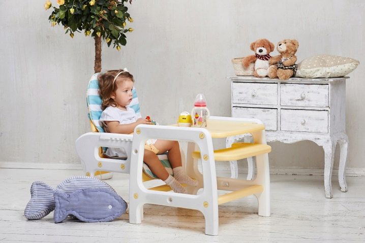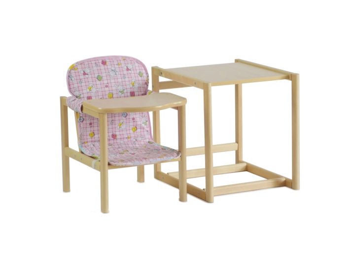 For babies, you can choose a model for feeding, where the seat is attached to the table, so the child will be securely fixed and will not fall. Often in such models special seat belts are provided.