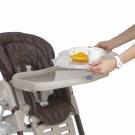 This model has three options of position in which there can be a back and a footboard, including a horizontal arrangement. The height of the seat is also adjustable and can be in five different versions. The table top can have three different depths, the tray and the cup holder are removable.In this form, the chair can be moved up to the common table in the company of all relatives. Thanks to the wheels, the high chair can be moved, and no marks will remain on the floor. You can put toys in the net, the chair is easy to fold into a compact state.