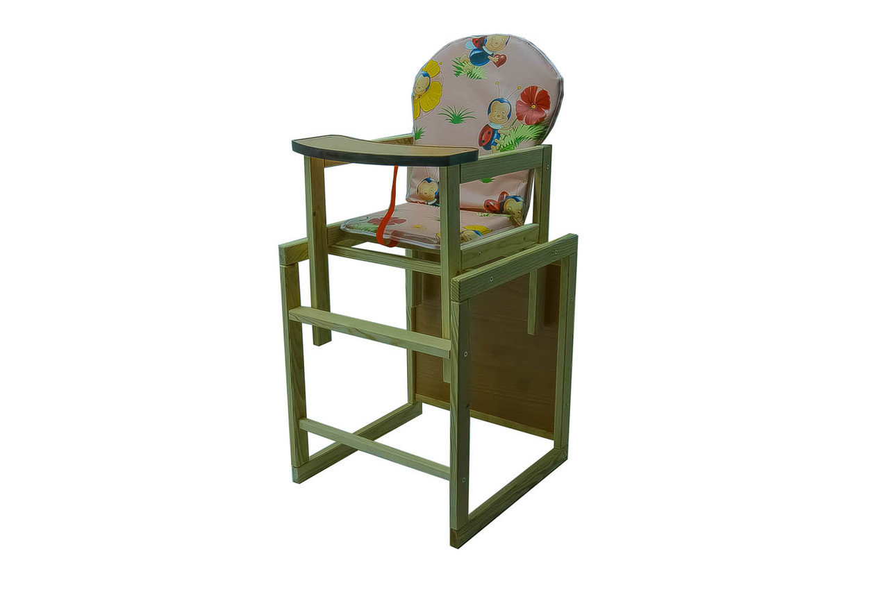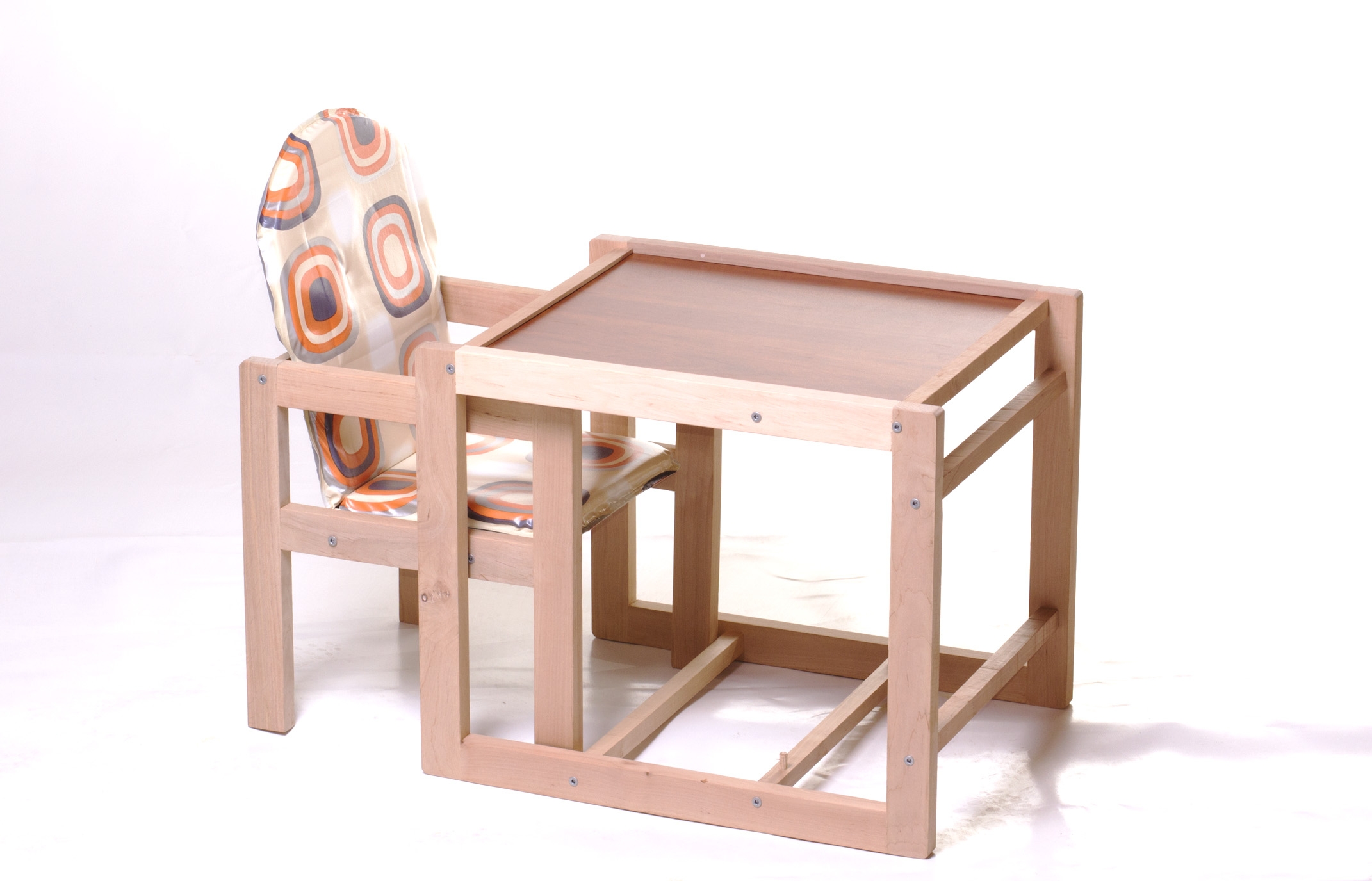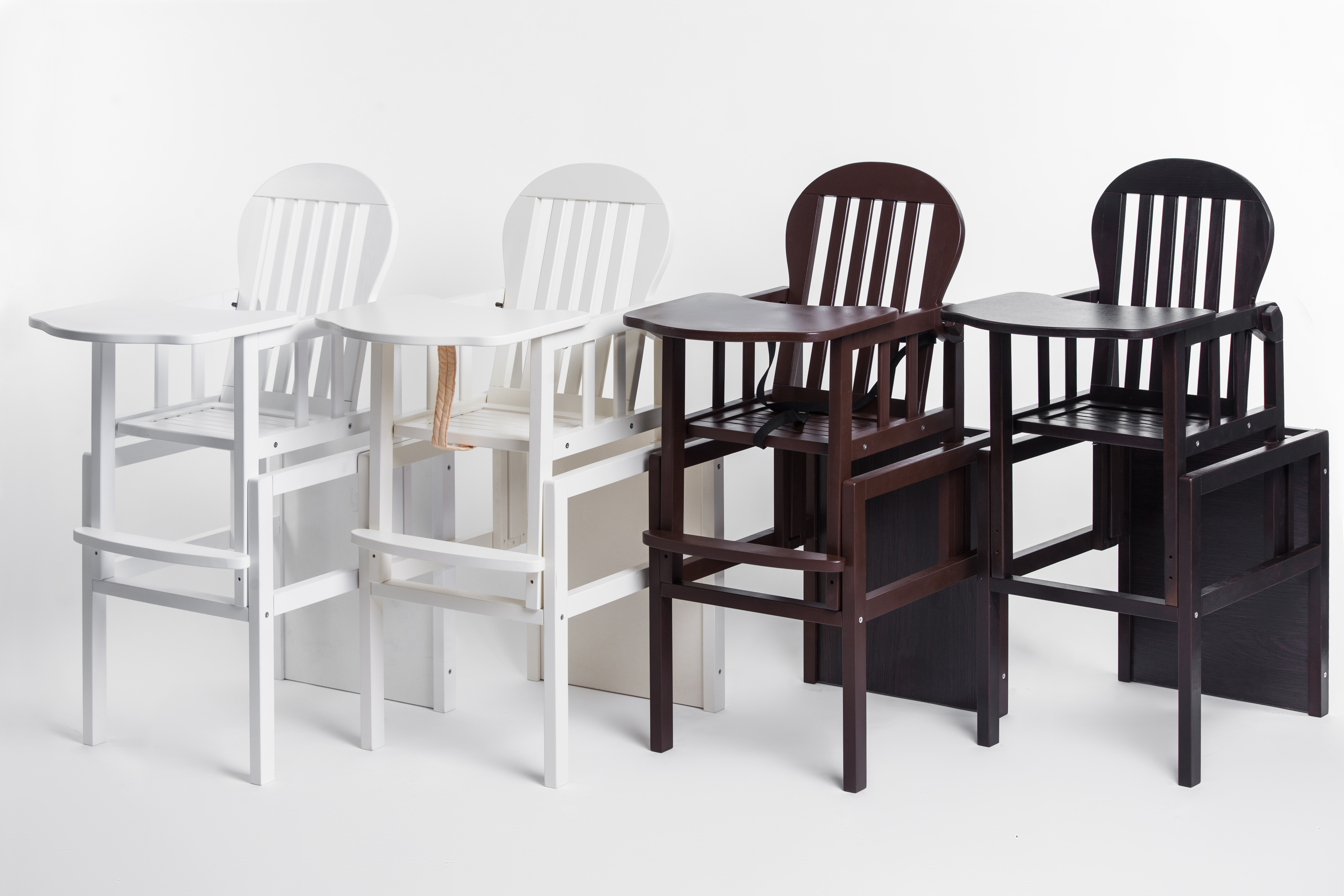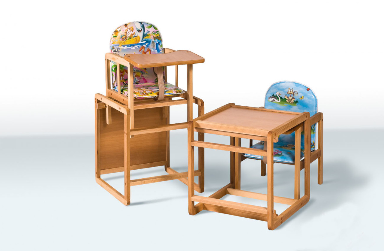A stool made of natural wood, environmentally friendly material - the best option for use. Even chipboard is fraught with danger to the health of the baby due to the presence of carcinogens in them. An excellent choice of wood will be beech, related to hardwoods, which means that the high chair will be distinguished by reliability and high wear resistance.