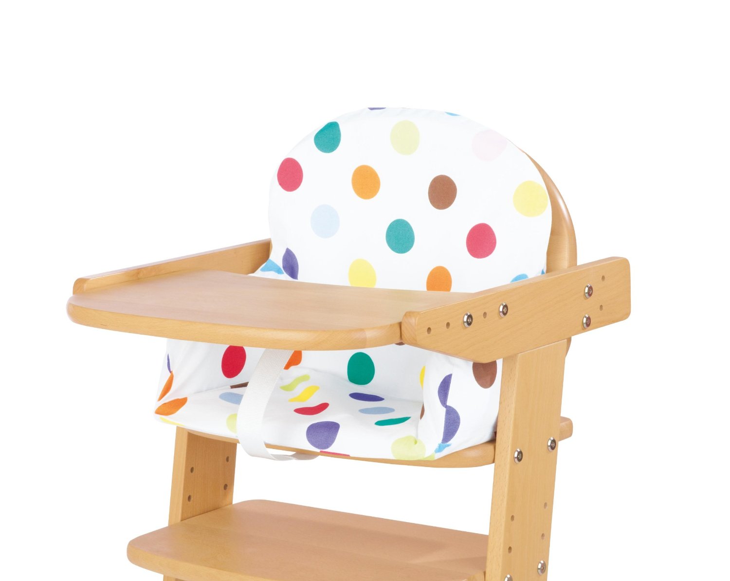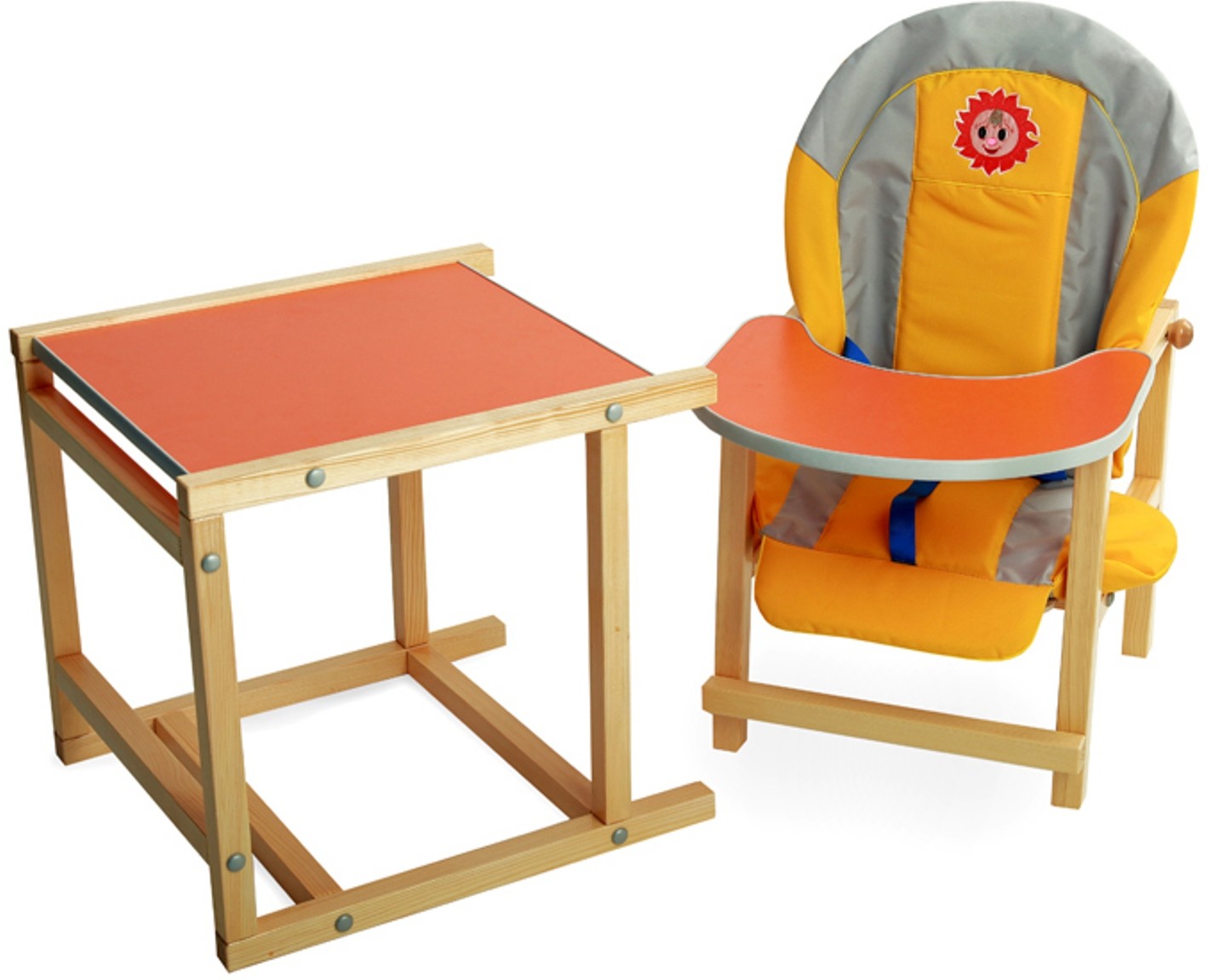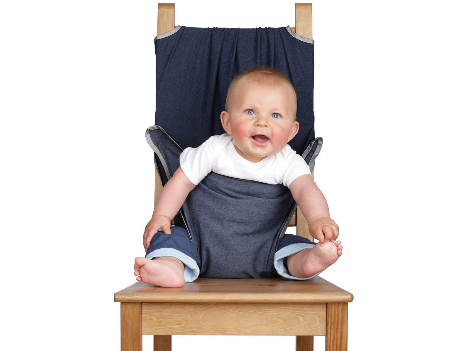 - The original chair-booster is attached to an ordinary wooden chair and thus the baby is level with the adults sitting at the table. It can be used as a folding road stool, which can be taken with you into the car or even put in a bag.