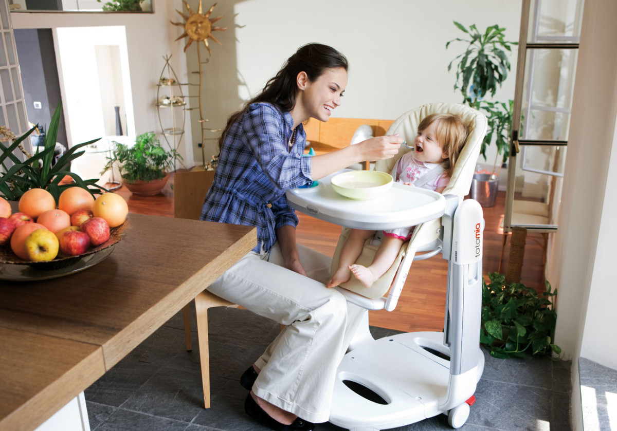 - In the case of a fixed high chair, choose it according to the height of your dinner table, so that the baby can sit on the same level with everyone.