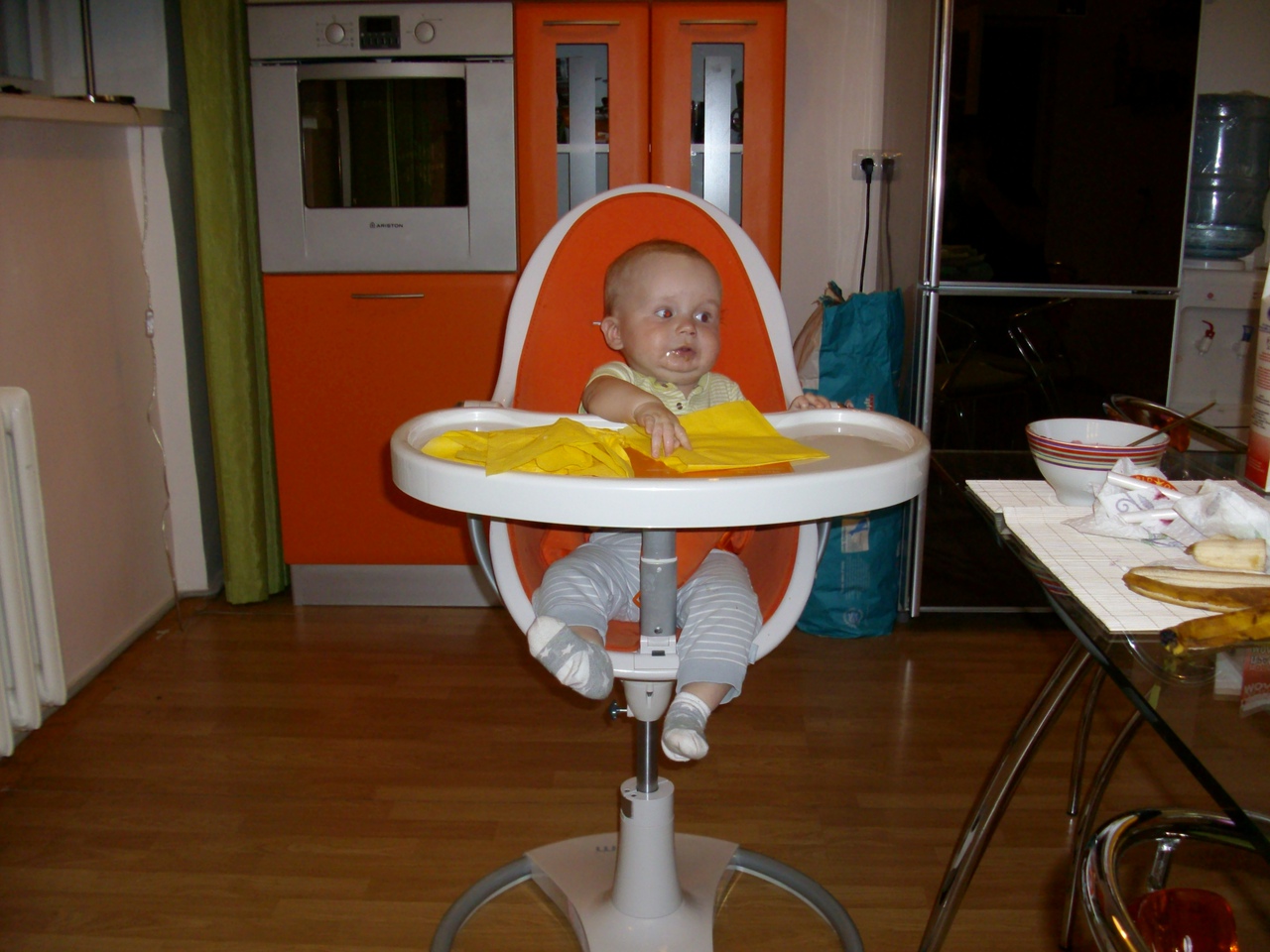 Mom on the handles, of course, was also not bad, but on the chair there is more freedom, and after dinner you can stay in the chair next to your mother and watch how she goes about her business.
