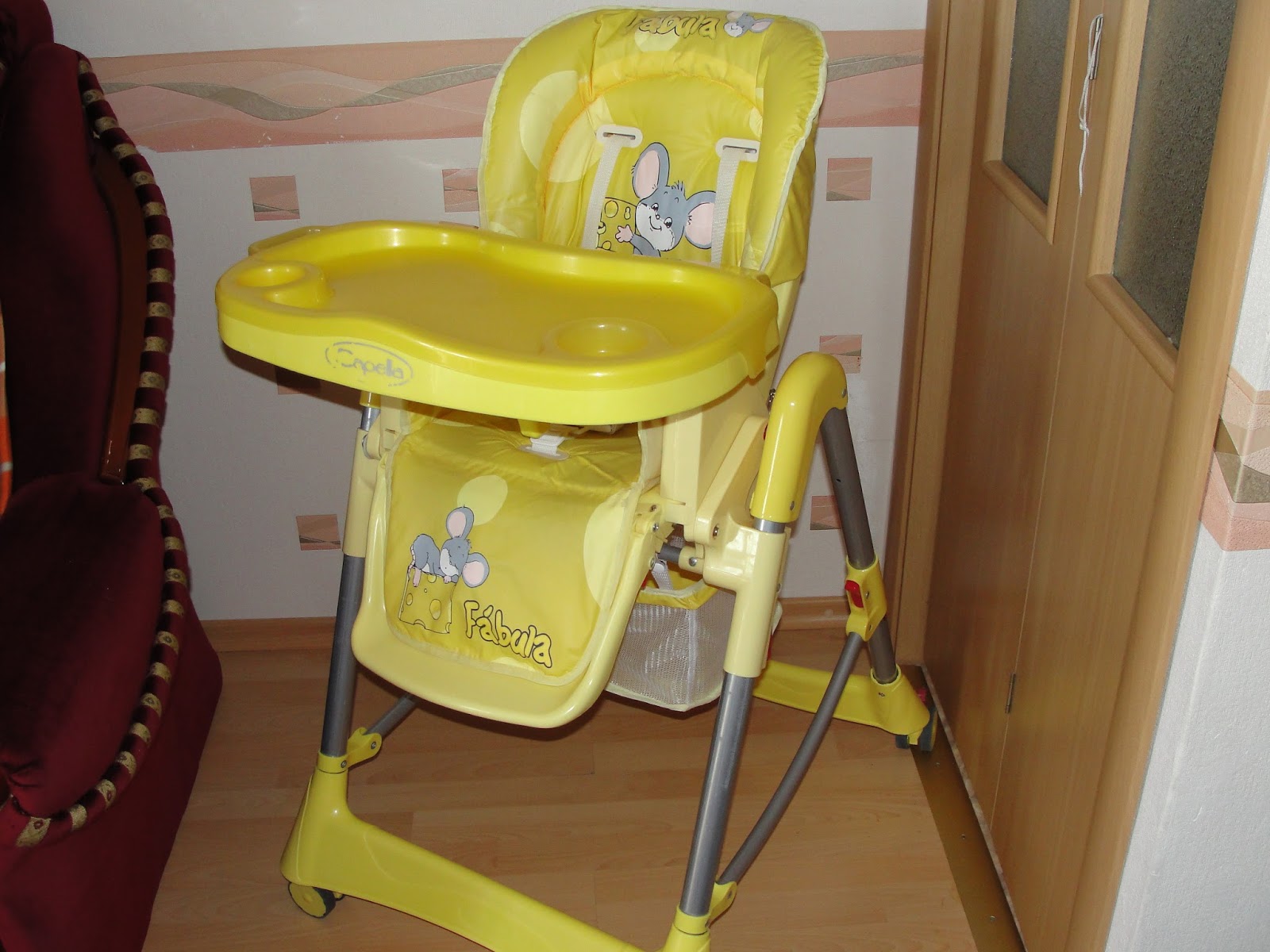 The table can be moved back and forth with a slight movement of the hand, which is convenient when feeding (food does not fall on your knees). The stool weighs no more than ten kilograms, it is easily rearranged, it can fit in the car.