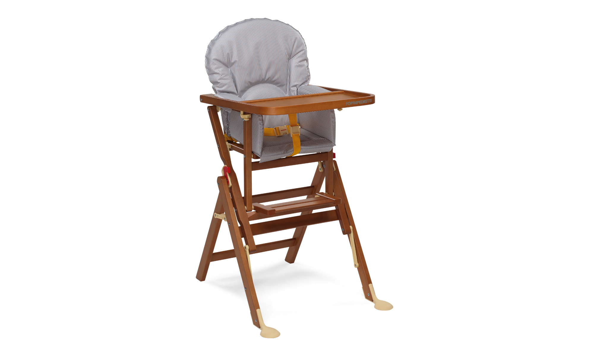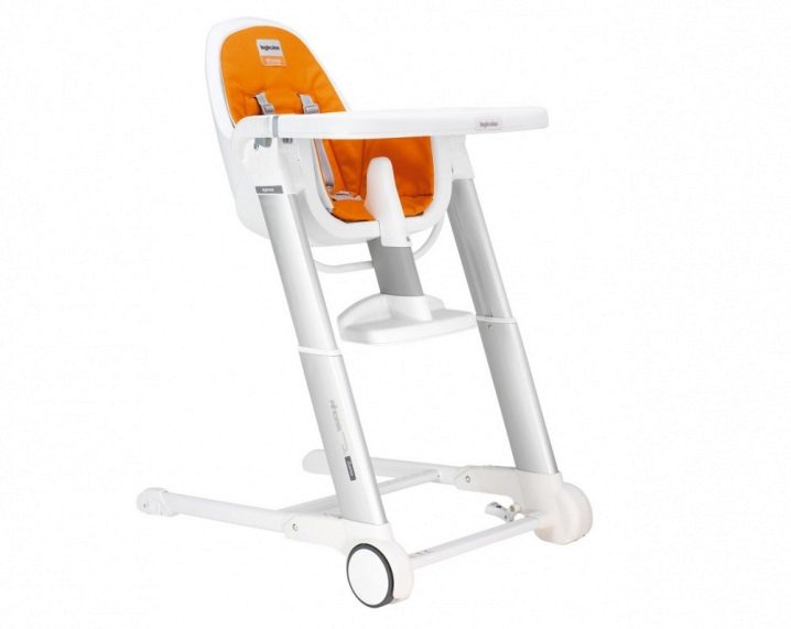 High-quality Italian chairs are very compact and practical. In the folded state takes up little space, has an interesting design and shades. Many parents choose white color, black and white combination of colors, orange, soft blue and pink upholstery.