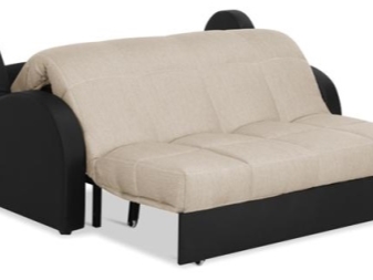 Another advantage is the fact that the sofa is made on a metal frame. The folded size is small, but there is enough bed space for two people. For a small apartment is the perfect option. As a rule, there is a removable cover that can be removed and washed in a typewriter.