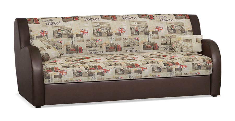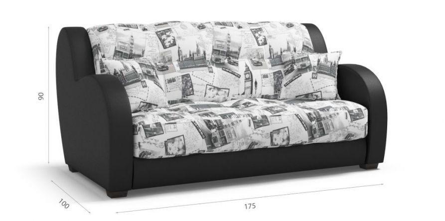 In the shop "A lot of furniture»You can find a cute sofa" Baron "with famous views of London. The soft part is made in gray, armrests - black leatherette. The warranty on such products - 3 years. This model combines an interesting print and stylish appearance, and the color scheme is not too bright, it will not get very dirty, and not very dark, it pleases the eye. A removable cover and two pillows are provided - all with the same print.London».