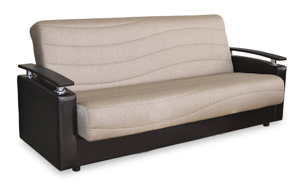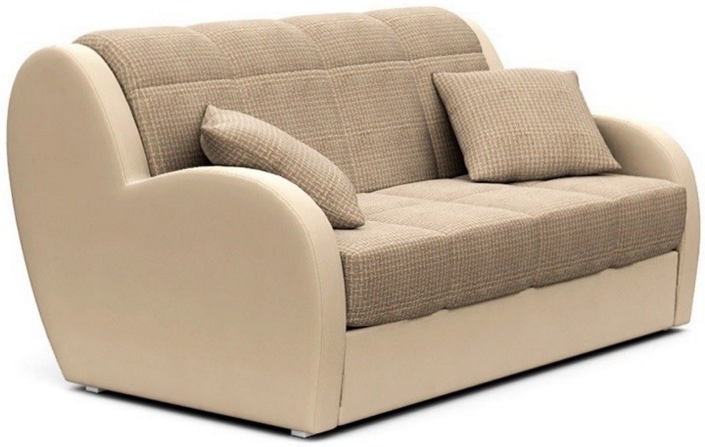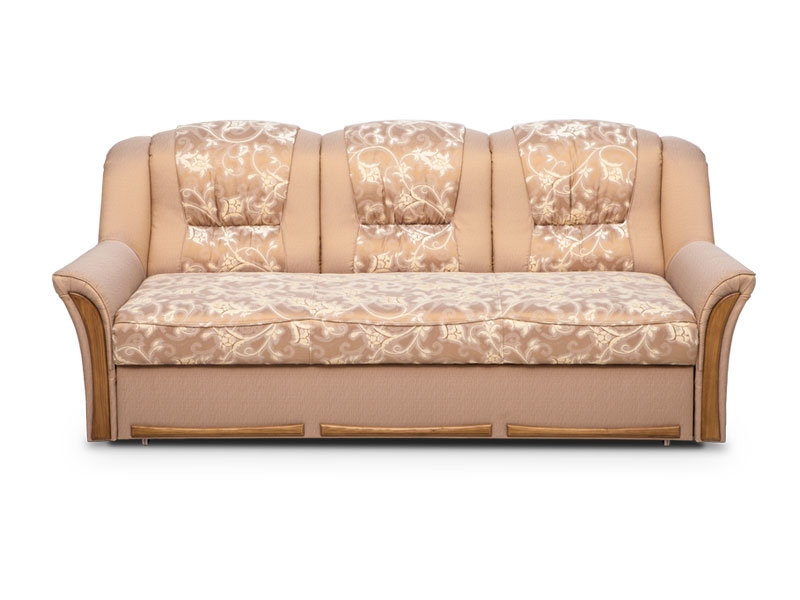 Sofa XL suitable for large rooms. He has a big bed. When folded, it will fit more people than on the standard "Baron". The armrests of this model are a bit ordinary. There are two pillows, but a laundry box is not always found. The armrests are trimmed with imitation leather, the seat and backrest are fabric material.