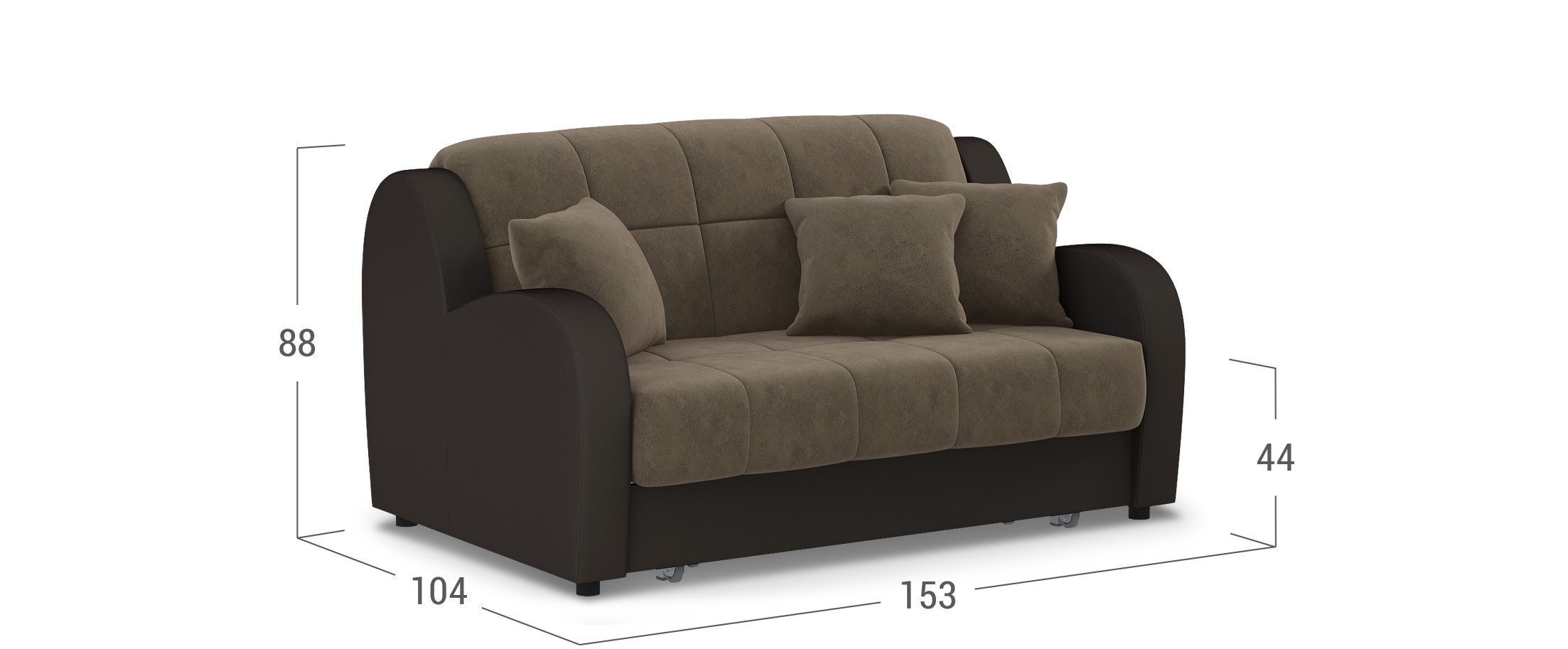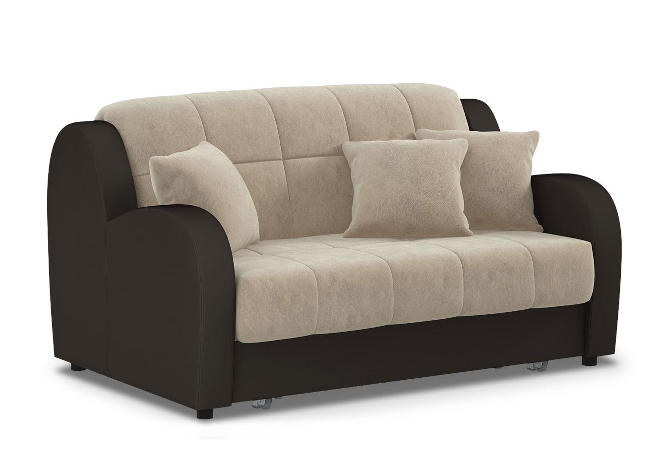 Direct "Baron" 022 in black-gray-beige color scale can be purchased at prices ranging from 20 to 22 thousand rubles. For this model, this is an excellent value for money. The dimensions of such a sofa: width - 173 cm, depth - 104 cm, height - 88 cm.The sleeping place is 148 by 204 cm. The upper trim of the sofa is made of velor and eco-leather, which is especially liked by those who are concerned about the environment.