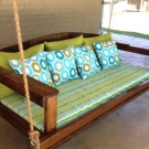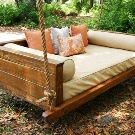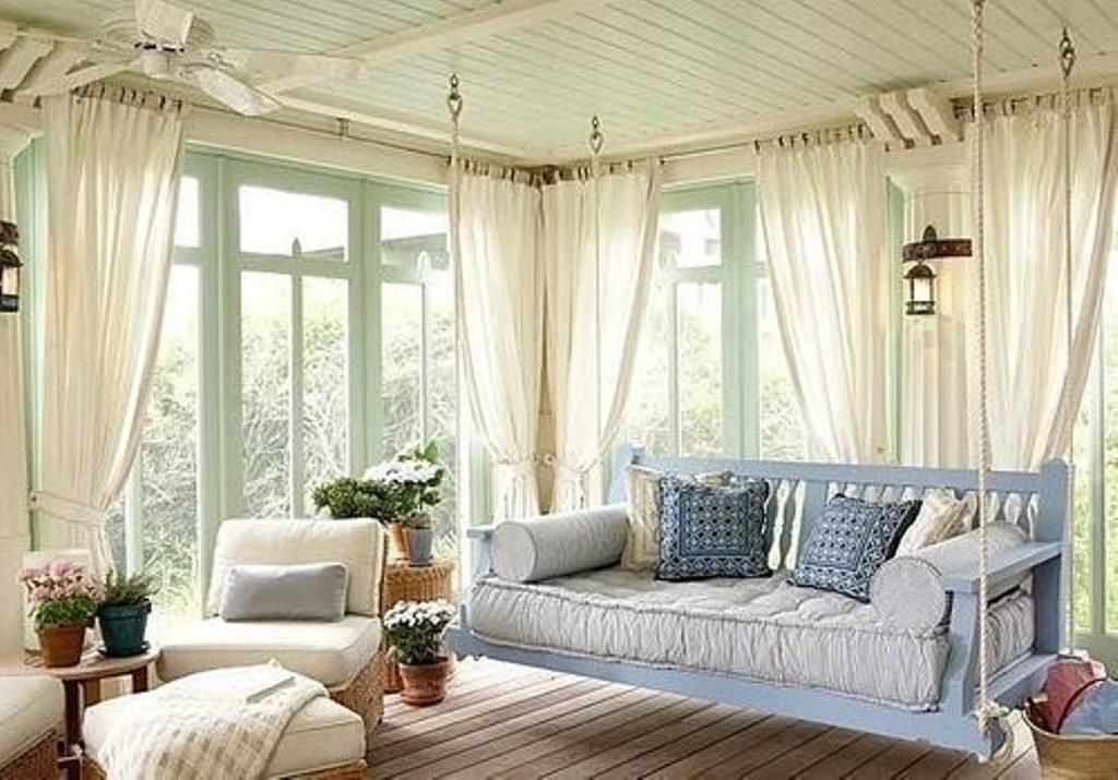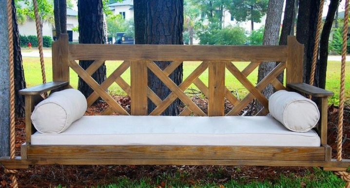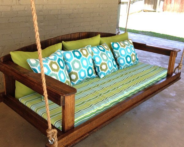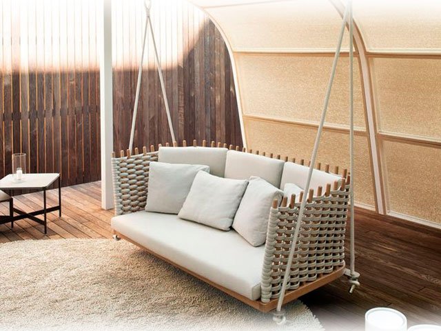 If you want to install a sofa on the street, on the veranda or in the gazebo, then a sofa swing is an excellent street option. As a rule, it is a small sofa that is attached to the support point by the ropes. The principle of its action is similar to the swing of children, which, of course, will appeal to both adults and children. It can be wooden or plastic and should not be subjected to greater loads than will be indicated in the instructions.