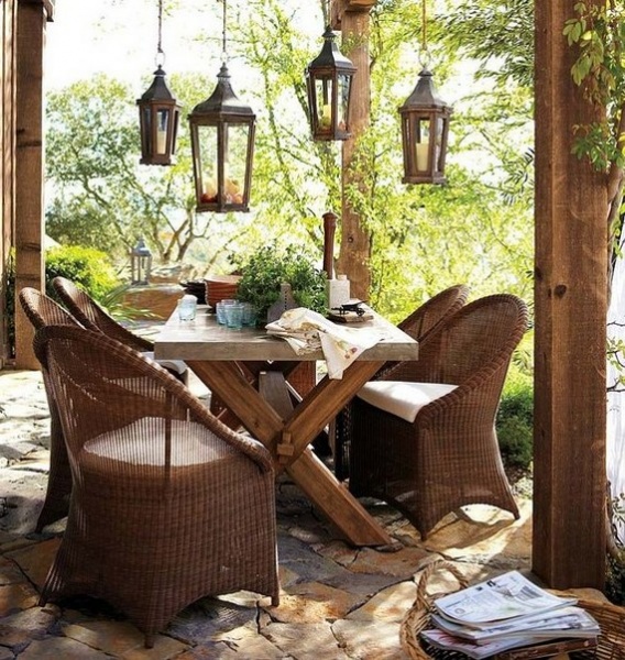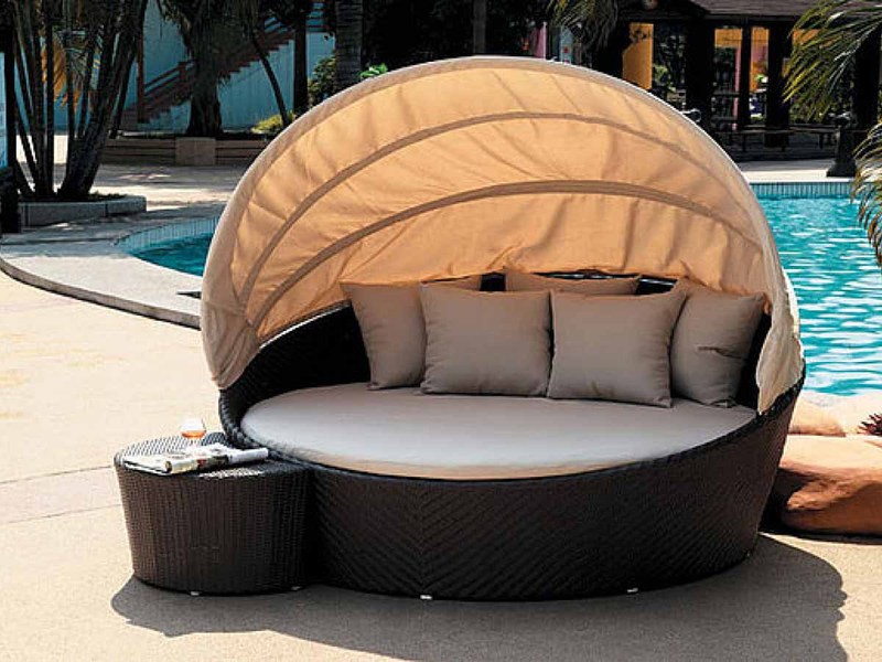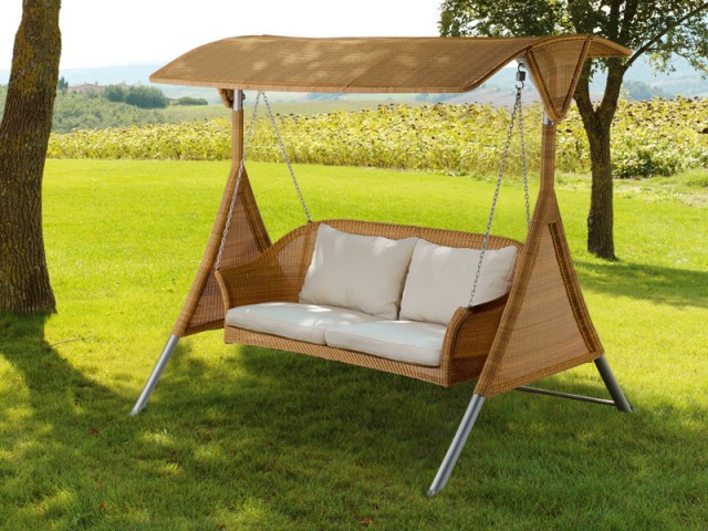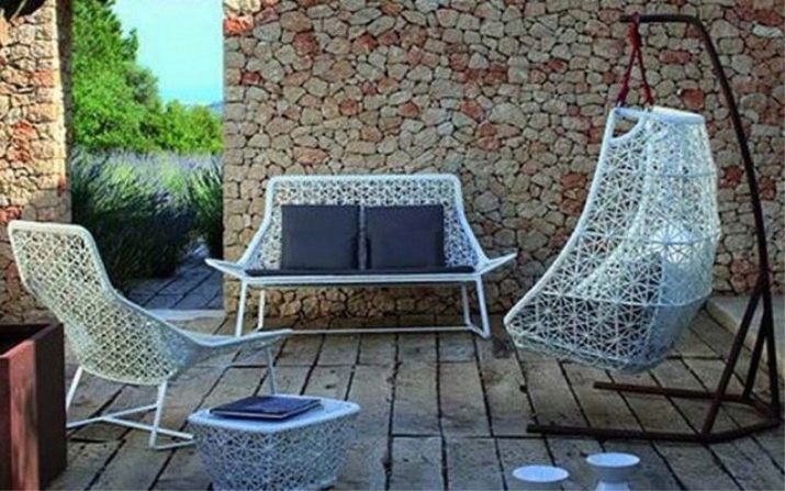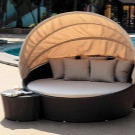 Special mention are sofa swings. It can be just a hanging sofa or bench, wicker or wooden. Perhaps this is the most romantic and relaxing option. You can sit down with your soulmate or spend the day in the shade in the company of a good book. Soothing rocking in an instant will put you in a state of relaxation and rest. This type of sofa is easy to install, has a relatively simple and intuitive mechanism, is easy to operate, assemble, takes up little space and has high comfort. Also, this sofa brings to the interior of a courtyard or house an atmosphere of comfort, but, unfortunately, does not fit as an extra bed - is rather narrow and, if not fixed, it swings.