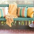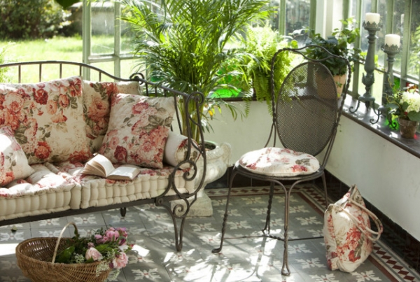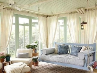 The sofa will look very modern - it is a small sofa with a back and armrests of the same height.It can be either sliding or not, but it is rarely used in summer cottages, since it seems to many that the seat is too hard.