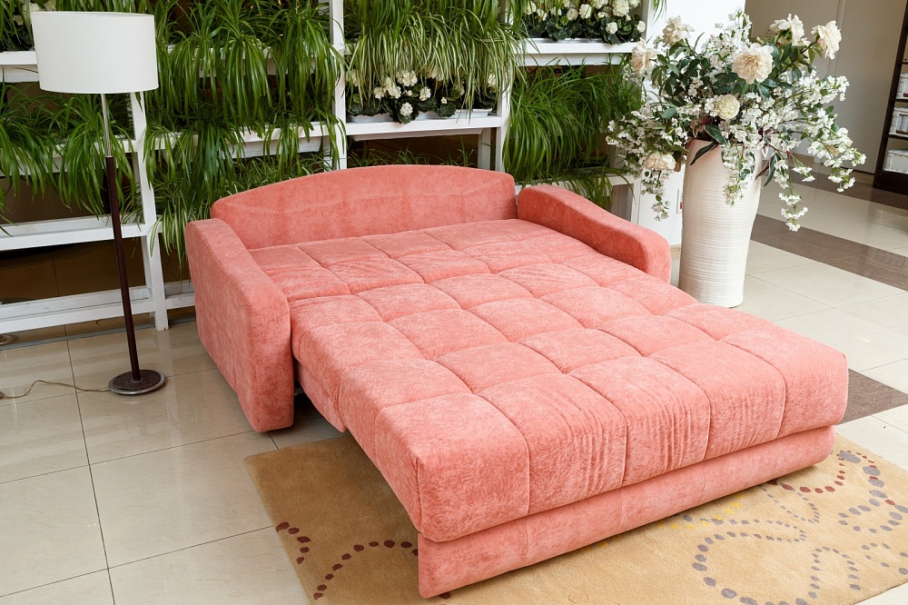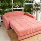 Sofa with vykatny mechanism - the most suitable option for giving.Unlike the sliding one, it is not necessary to do unnecessary movements for its folding. And if Eurobook is an option for the lazy, then in the case of Dolphin, you will need to try a little. It is necessary to lift and pull the block under the seat at the same time so that it forms a bed with the seat. The advantages of this sofa are that it does not take up much space and even its backrest remains at rest, that is, it will not need to be moved away from the wall. But vykatny sofas, without exception, no drawers for linen in the case.