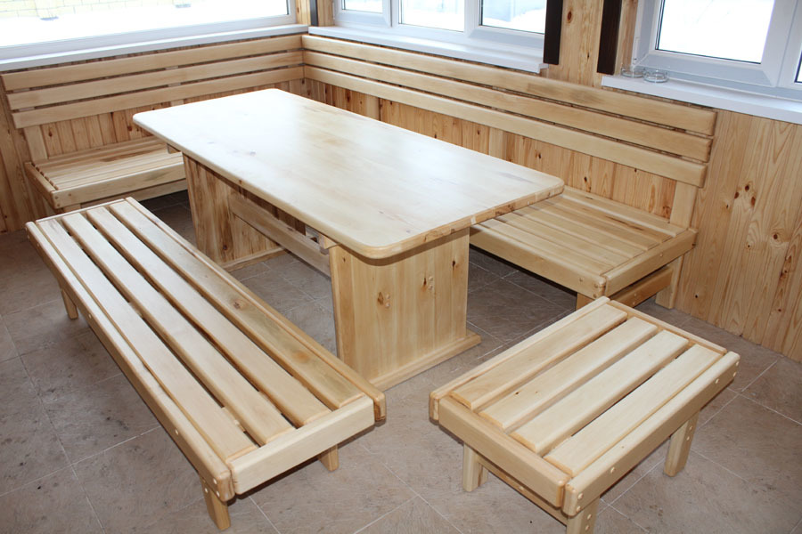 The most convenient material for the manufacture will be wood. It is easy to install and transport, it weighs less than metal and pipes, and is also an environmentally friendly material. You will need boards of different sizes - for the back, seats, armrests, the armrests themselves, carpenter's glue, paint or varnish, and putty. Of the tools - a hammer and everything attached to it (nails, bolts, and so on), a grinder, a screwdriver and a drill.