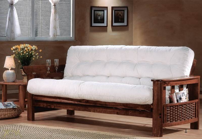 Choose sofas better from a wooden frame - this is more environmentally friendly, which fits better with the concept of a summer house, besides they are easy to assemble. Pay attention to the framework of ash, oak, pine or walnut.