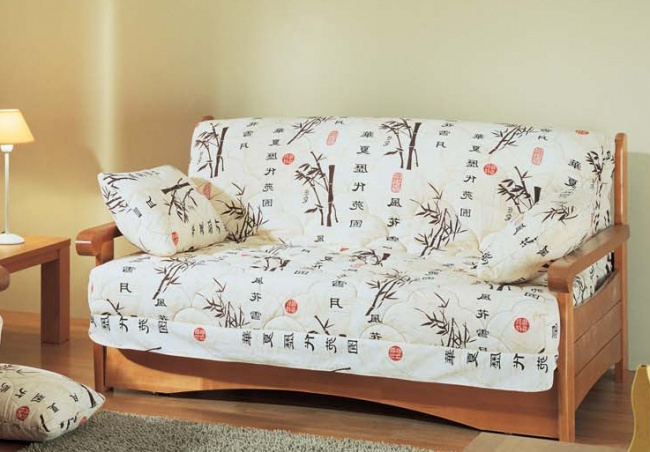 Sofa "book" - the most famous version of the sliding. And, perhaps, the most reliable. The principle of its mechanism is virtually identical to the "Accordion" - the seat is pulled out and the backrest is lowered. Unlike the first, the “book” has enough space under the seat to arrange bedding or any other small things in the country. The main disadvantage of the “book” is its size, since it is not always at the cottage that there is enough space for its decomposed version. Therefore, before buying, be sure to measure the room. Also this mechanism has one weak point - the place of the bend. But he has a more advanced counterpart - “Eurobook”, equipped with a vykatny mechanism. That is, for the seat you need only to pull (it is equipped with wheels), and the back will settle down in its place independently.