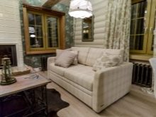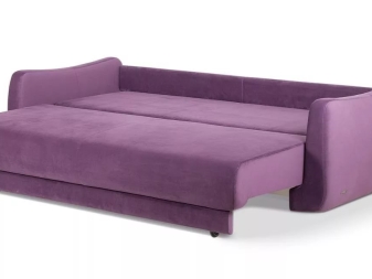 - Sofa bed "Ron" - very stylish model. At the base of the low pillows laid multi-layer polyurethane foam, giving maximum comfort when leaning. The design of "tick-toc" allows you to silently push the bed with one hand. For this, a convenient handle is provided at the front.