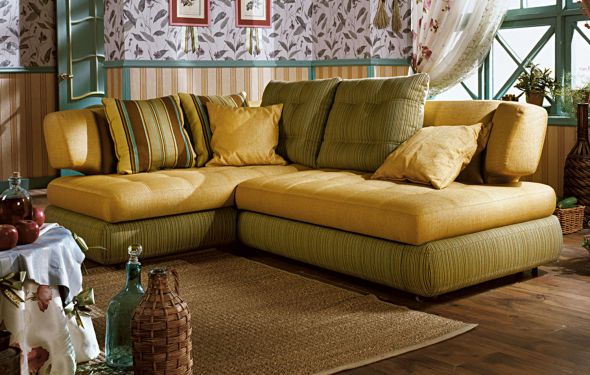 - Ruler "Bruno" it is presented by vykatny, angular and modular sofas, and also a chair bed and an original couch. The couch when folded is great for a very small room. But expanding, it forms a full-fledged sleeping place, and the volume linen drawer adds comfort. The “Bruno” sofa with a high-rolling mechanism also occupies a small area and silently turns into a high and comfortable place to sleep. The corner model pleases with a spacious seat, a box for linen, a simple dolphin mechanism and unusual transformable pillows that can be installed in two positions. The stunning sofa "Bruno" of the modules will become a favorite vacation spot.Comfortable seats are filled with spring block, furniture felt and a thick layer of highly elastic polyurethane. Non-removable cushions can change the slope, height of the backrest and the depth of the sofa. The bay-corner can be ordered both with decorative wooden overlays, and without them.