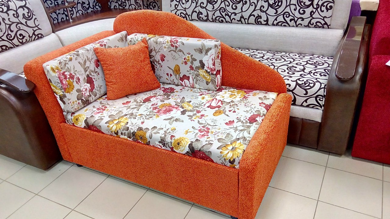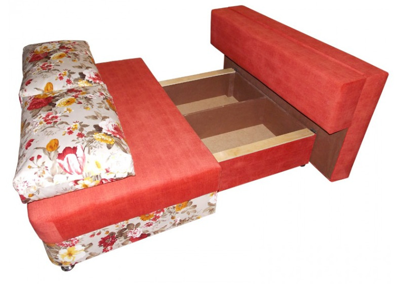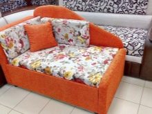 Dimensions are really impressive with their minimalism and practicality: height - 80 centimeters, width - 78 centimeters, depth - 87 centimeters; berth size - 185 by 78 centimeters.Orange fabric upholstery is very pleasant to the touch, is not afraid of dirt, durable and will last for many years. Foam rubber is used inside. This model weighs only 55 kilograms.