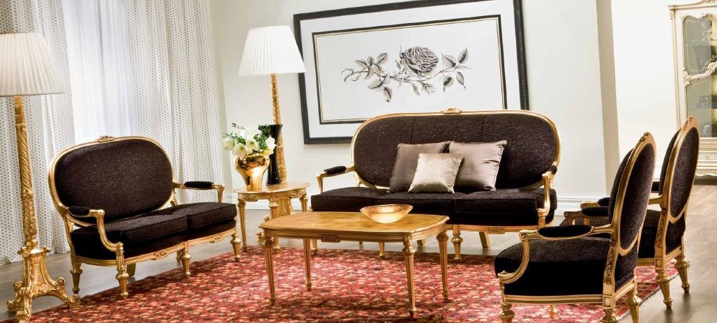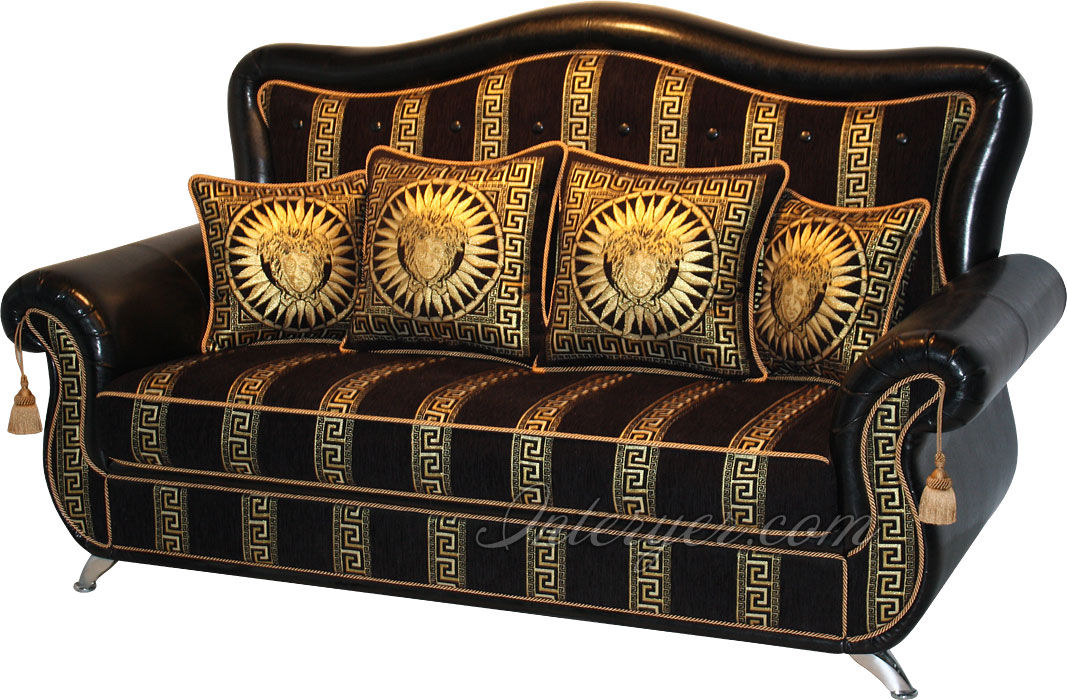 The Italian company offers unusual modern upholstered furniture in the Baroque style, Rococo. This sofa can be double or triple. The legs, armrests, back edges and seats are trimmed with gold foil. Depending on the capacity, the length can vary from 137 to 200 centimeters. The remaining parameters are unchanged: width - 82 centimeters, height - 112 centimeters.