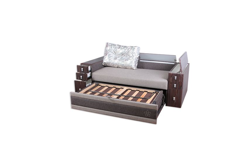 For meeting friends or for relaxation and even sleep fit such furniture. Inside the mechanism can be hidden "French clamshell". If you remove the pillows, armrests, pull out the seat and lower the back, you get a full bed.