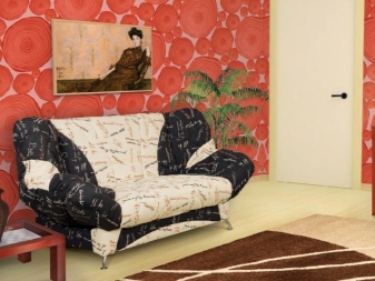 To decompose the book, you need to push the seat forward, and the back to tilt back. Most often, it is these kinds of upholstered furniture that are acquired in the event thatif you plan to use this product as a bed. This type of sofa is convenient and practical. The "book" has other advantages: it can look very stylish and beautiful. This option can easily become a highlight of your interior. This is a less massive type of sofa, so you can furnish a room very interestingly and easily place all the other pieces of furniture in it.