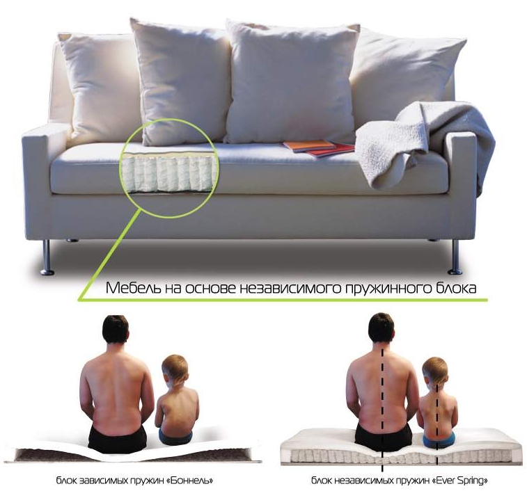 - The sofa with foam rubber is softer, it is easily molded and can adversely affect your spine. It is best to select such models that have two filling levels: the lower one - solid polyurethane, and the upper one - softer foam rubber. You can buy an orthopedic sofa book with a special filling, which has a great effect on health and has a beneficial effect on the back and spine.This option is most preferred if you get it for sleep.