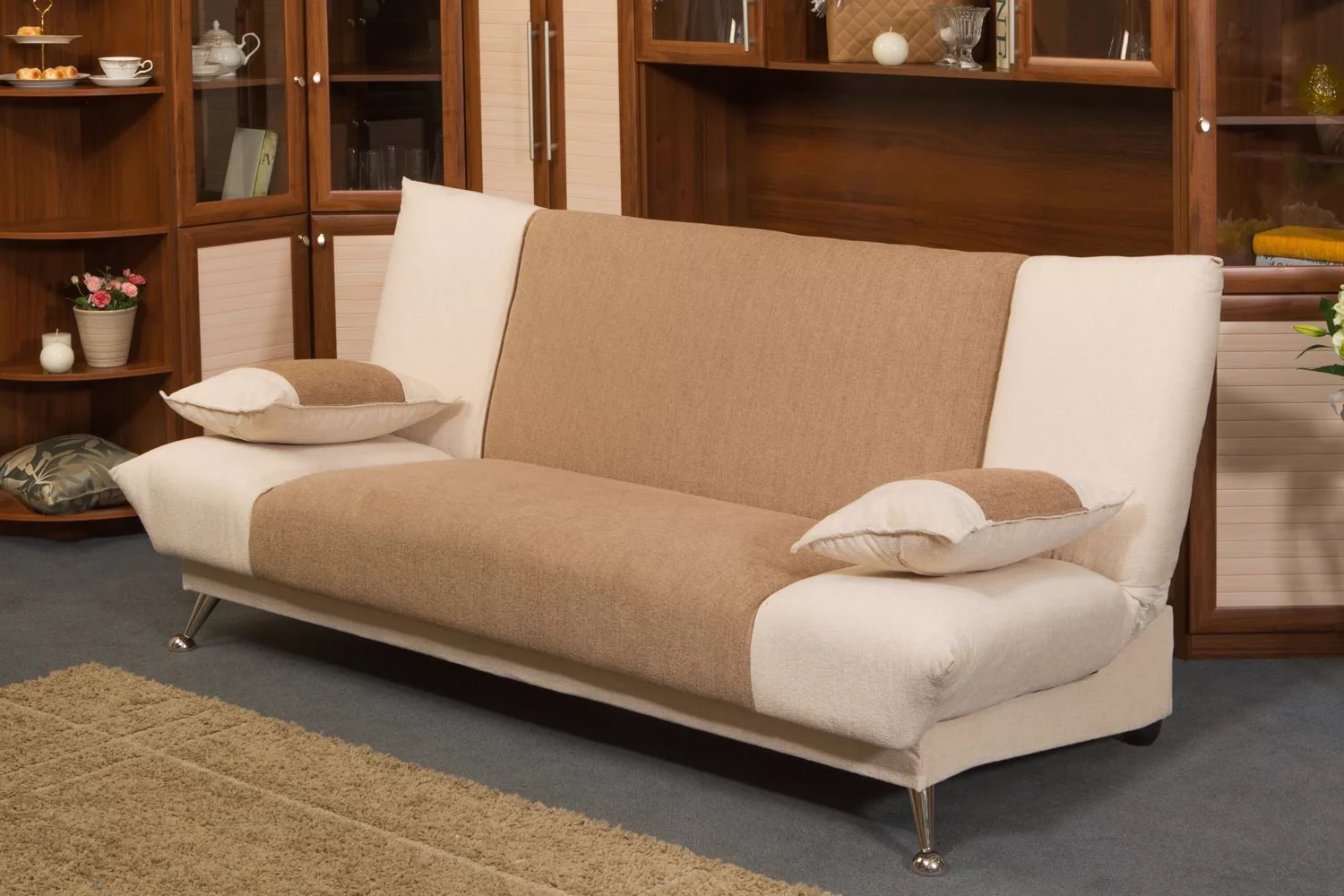 This type of furniture usually has a small size, therefore, a sofa book is the perfect solution for those who have a small room in their house or apartment. In addition, already disassembled, this furniture will occupy not much more space than in the folded. The specific folding mechanism allows you to save space in the house. In addition, the sofa book is equipped with a box for linen, which is usually not available in sliding models.Some consider the lack of armrests to be the disadvantage of such a piece of furniture, but that’s how it looks less massive. So it will be much smaller in size than sofas with armrests.