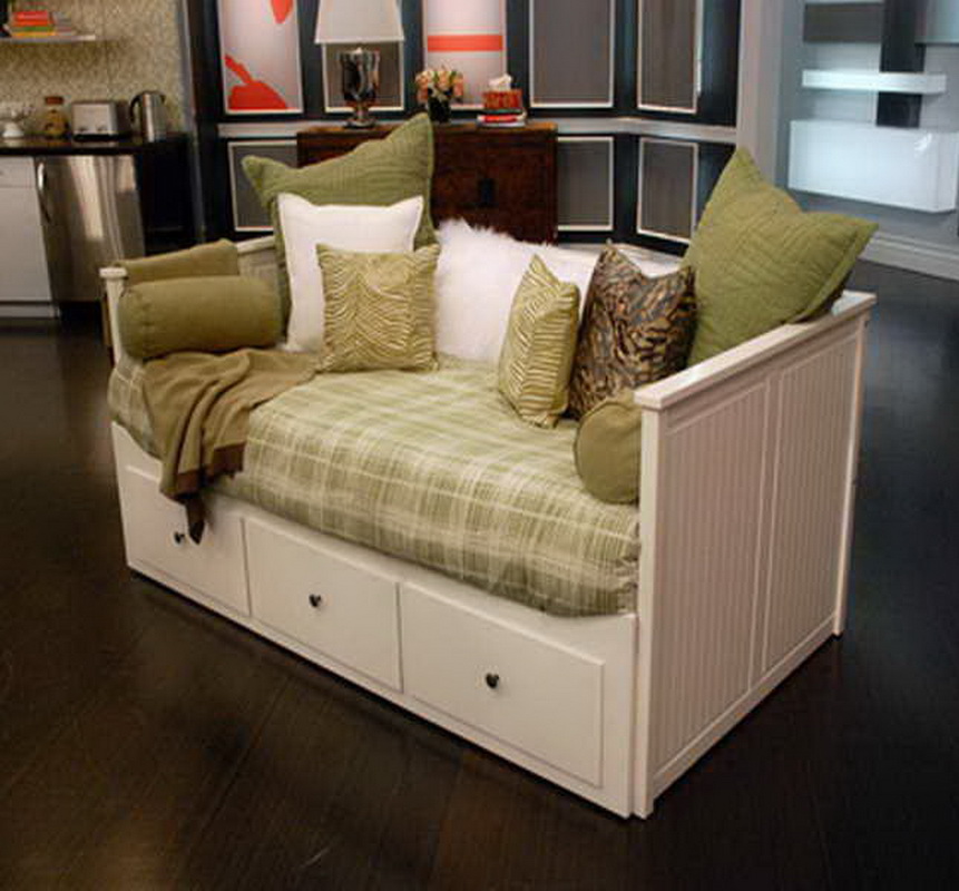 Upholstery of the couch is very important. When choosing a model for frequent use, make sure that the upholstery is moisture resistant and easy to clean. The material from which the base of the bed-couch is made is very important. Recently, this used laminated chipboard or wooden beam. A modern filler of soft details of a couch or couch-bed is medium density polyurethane foam. Sometimes use spring block or independent springs.