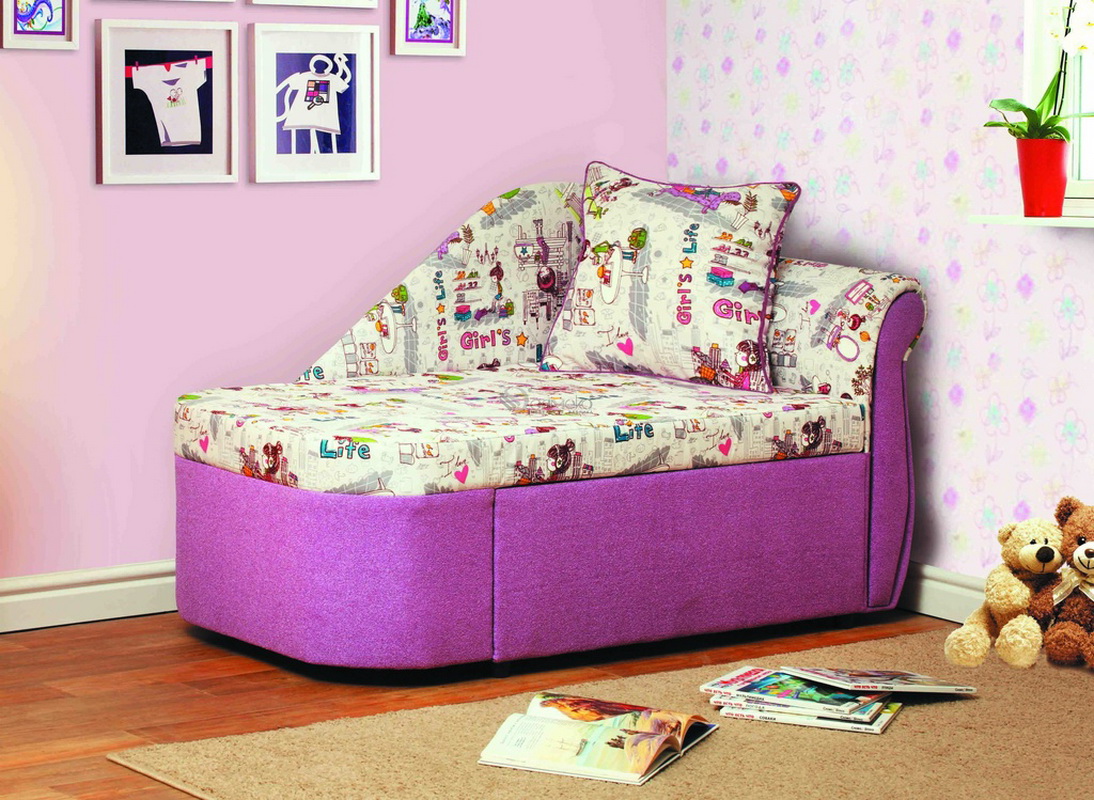 - Children's couch-bed "Comfort-N-5". Famous model, which is often chosen by parents. This product can be put in the nursery, as it is specifically designed for use by the child. Such furniture is convenient for the child, it has a box for toys and bedding, compact. To sleep at night unfolds, a place to sleep is very smooth.Equipped with three pillows, there is a removable cover that simplifies the care of furniture. It can be washed. The couch for a child is 104 cm long, 75 cm deep, 74 cm high. The place to sleep is sliding. There are four sizes: 101 × 70 × 47 cm, 128 × 70 × 47 cm, 158 × 70 × 47 cm, 187 × 70 × 47 cm.