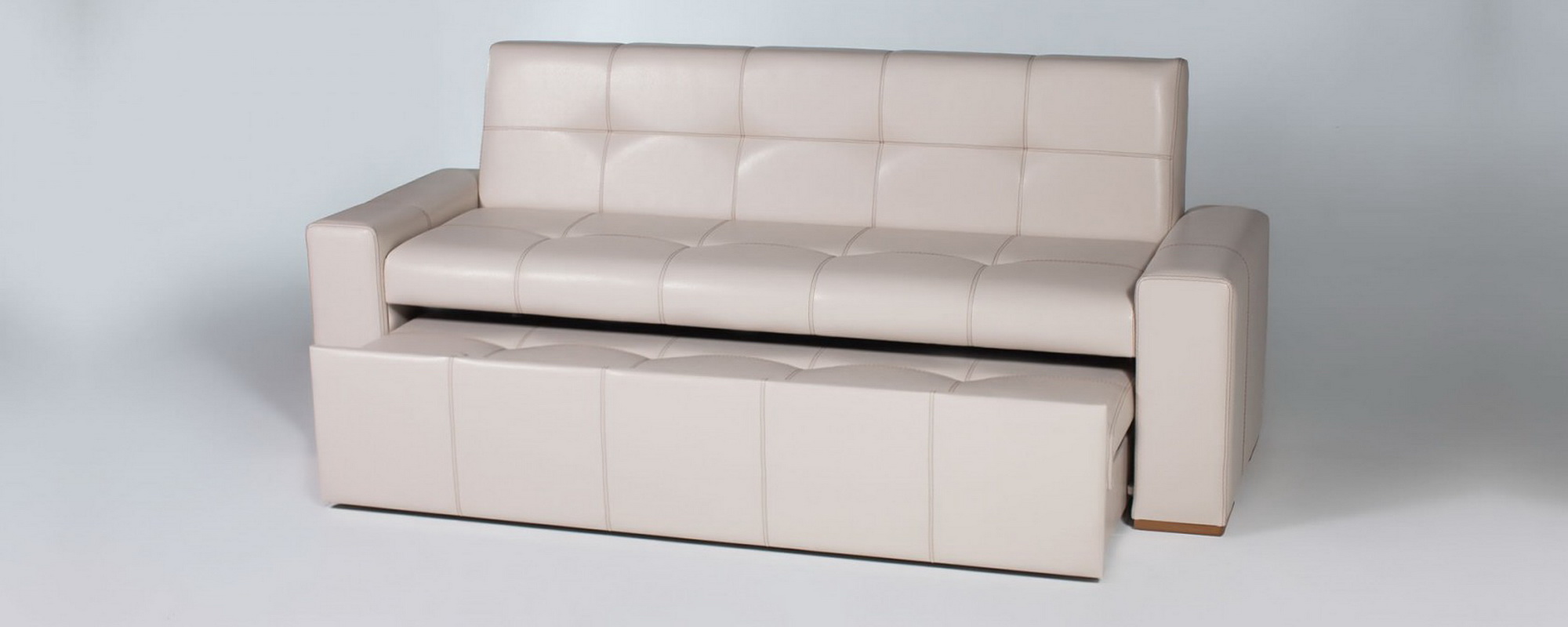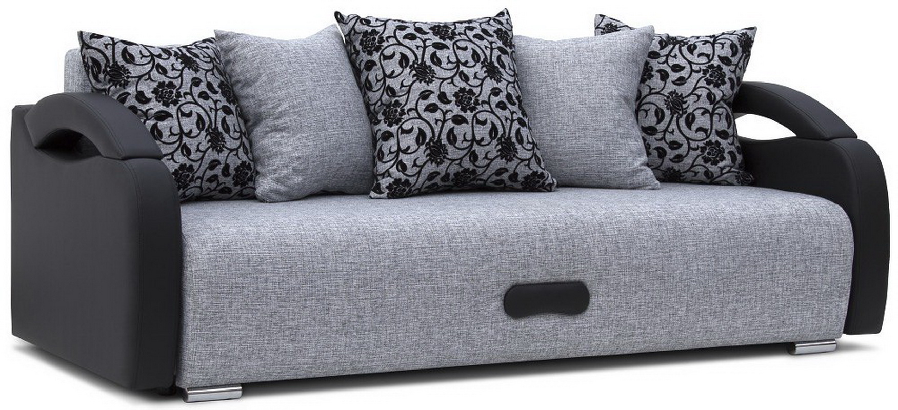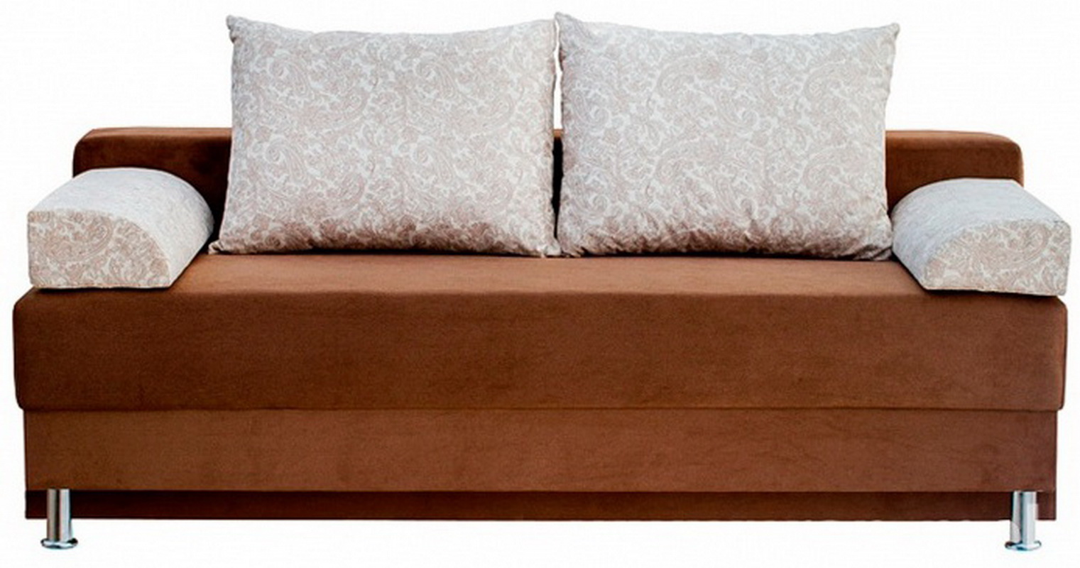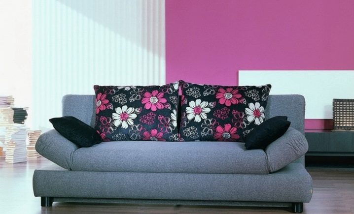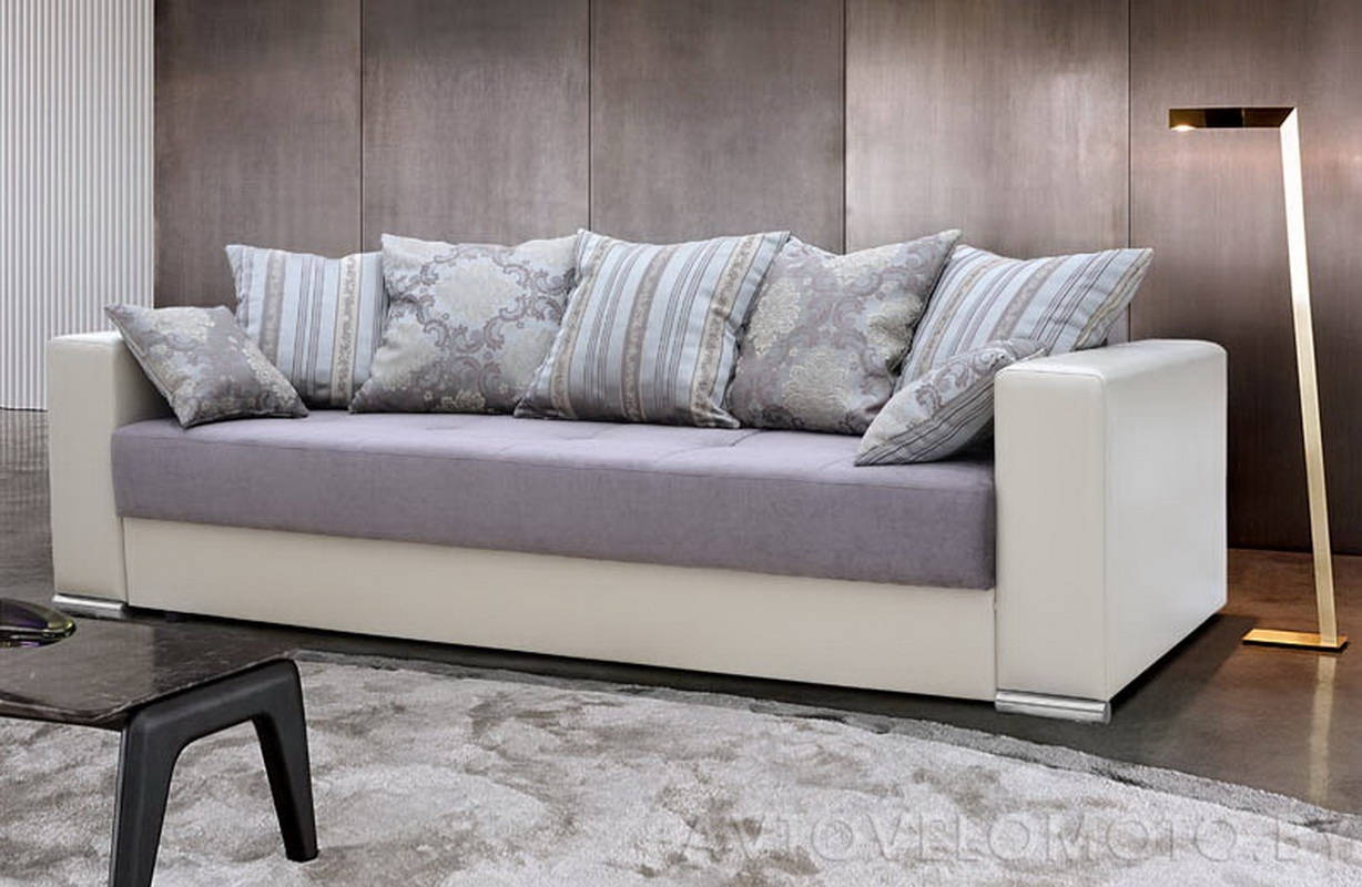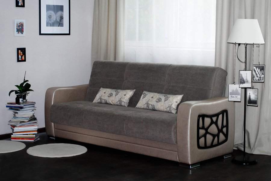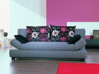 - Parma differs from their comrades by the absence of armrests per se. Instead, there are two small pillows, made in the color of the sofa and attached to it with a special adhesive tape. Such pillows are simply removed, however, when using such a sofa for sleeping, a part of the ribbon located on the seat can create discomfort for the sleeper. This problem can be solved with the help of a thick rug, which will create additional softness and ensure a peaceful sleep.