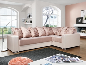 A variety of models of sofas "Madrid", except for the appearance, is famous for the variety of equipment, although, by and large, the whole difference between them lies in the number of pillows. For example, the model number 3 comes with three additional mid-size pillows, the model number 5 has five medium-size pillows and four small ones, and the model number 2 comes with two large pillows and a cushion used as an armrest.
