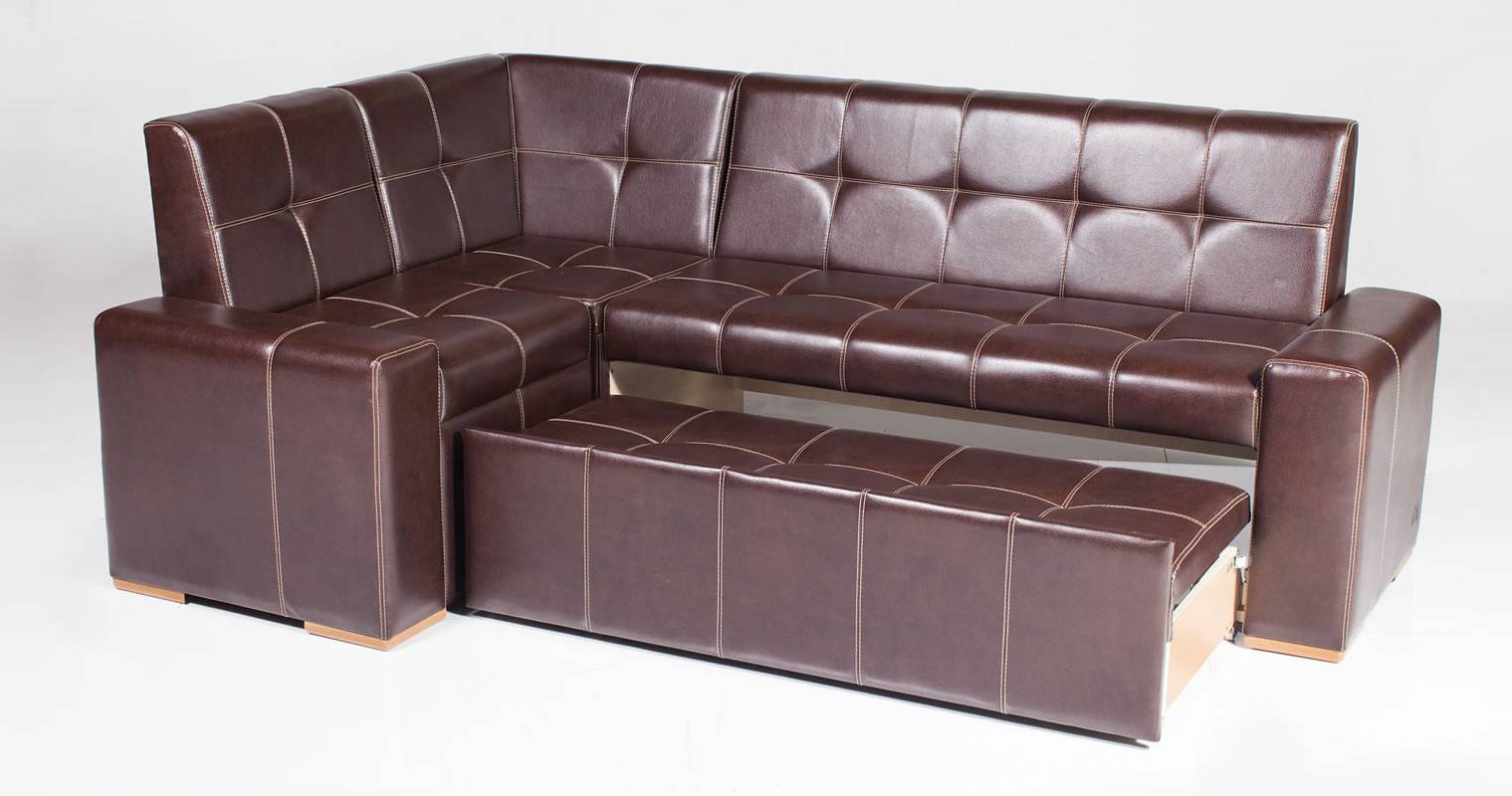 - "Coach" - This is a kind of kitchen corner with a berth, upholstered in leather or leatherette. Equipped with two armrests. The berth can be replaced by a vykatny box for storage of various things.