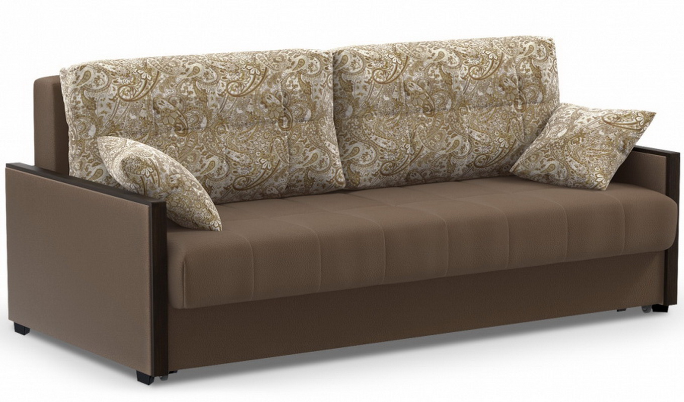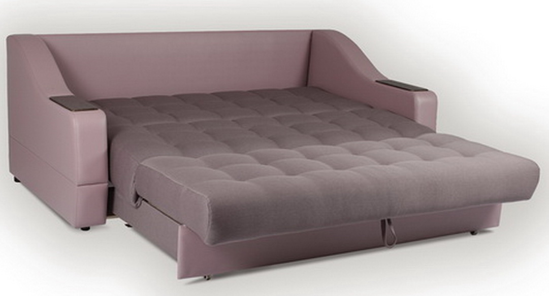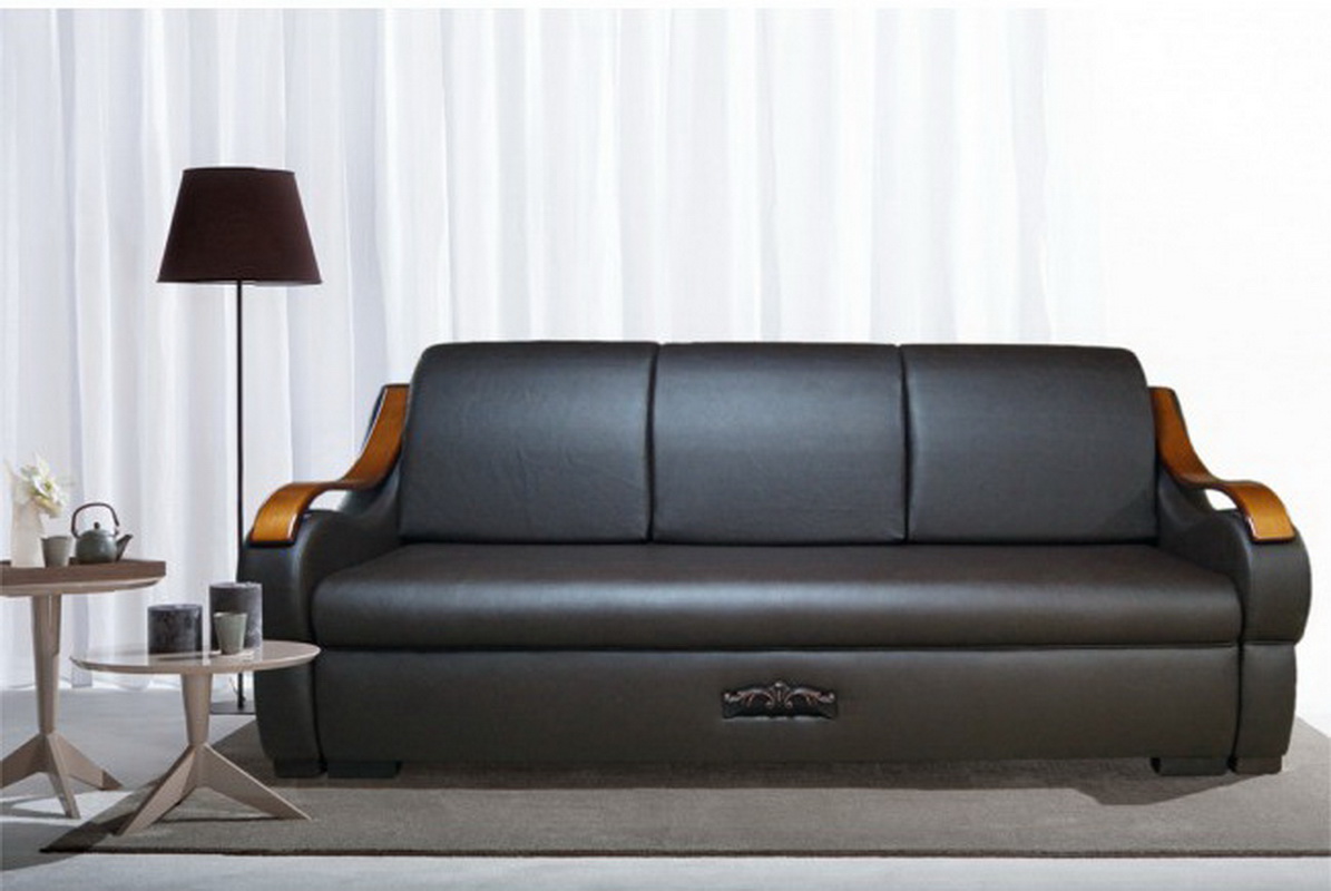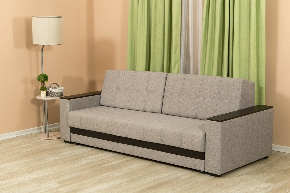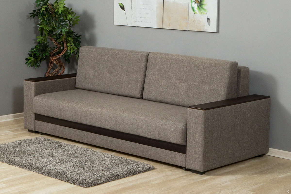 - "Lux" - This is a sofa equipped with two armrests with wooden lining, which can be used as a small table for placing drinks and necessary products on it. It is equipped with a roomy enough drawer for bed linen. It is upholstered with a matting that fits well in almost any interior. There is also a large variation in upholstery color.