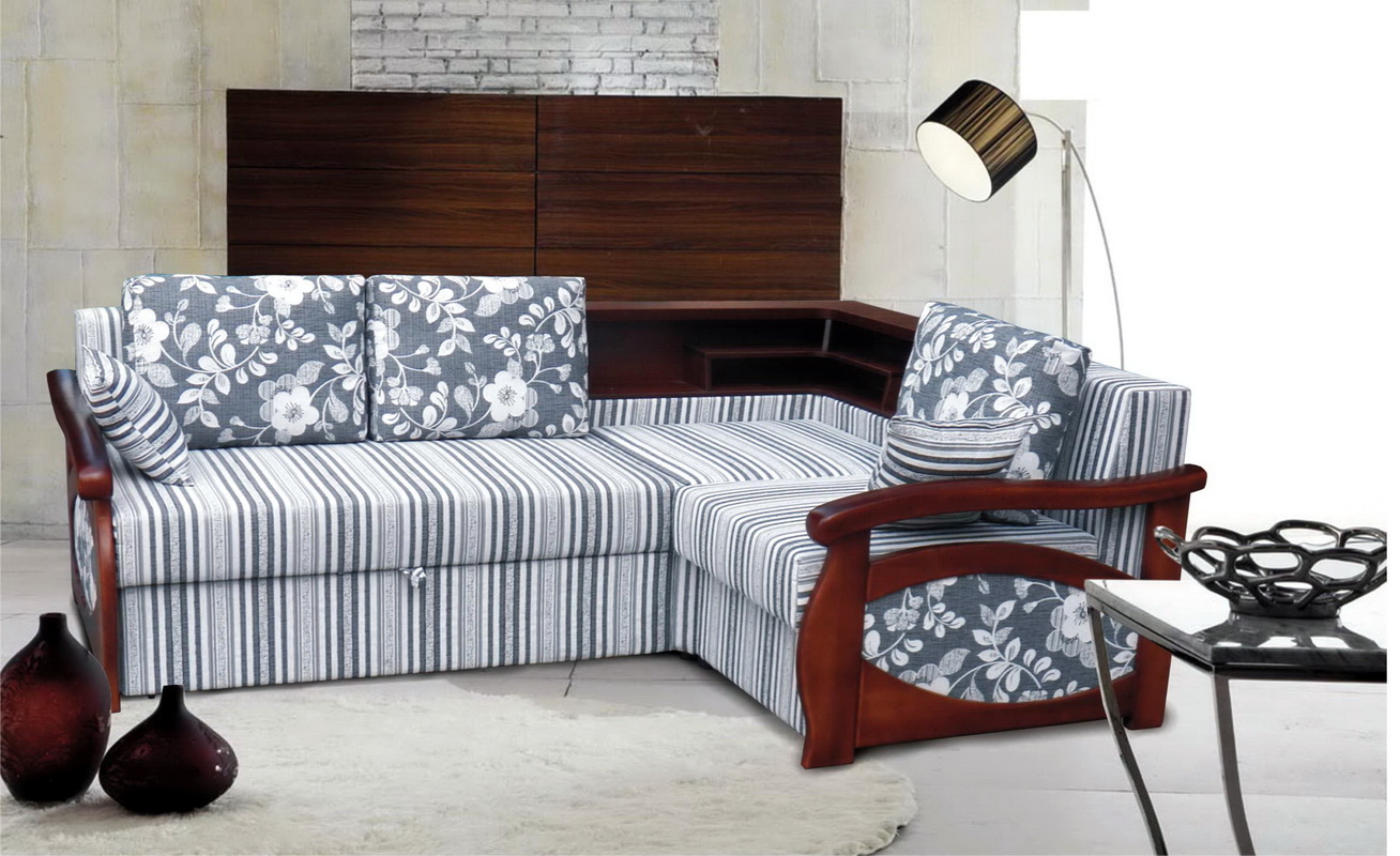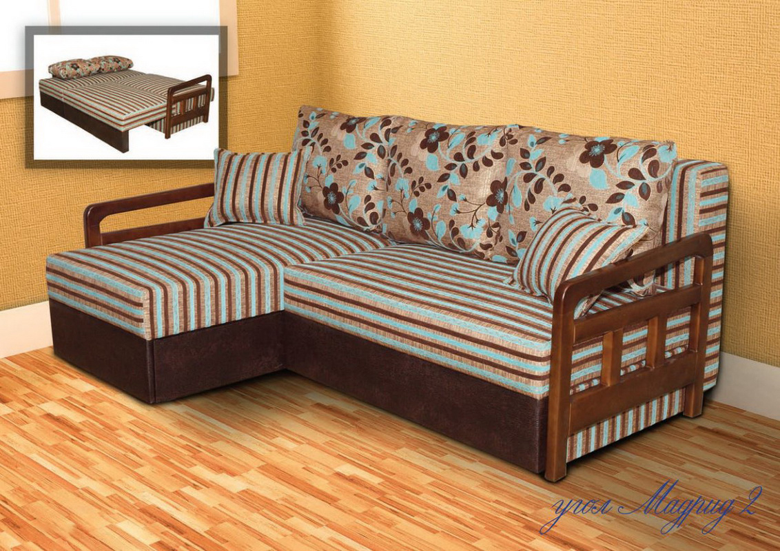- "Madrid 5" - This is another unique design, the angle of which is static and not interchangeable. In the folded state it has backs along the entire perimeter of the sofa and two armrests with wooden inserts.