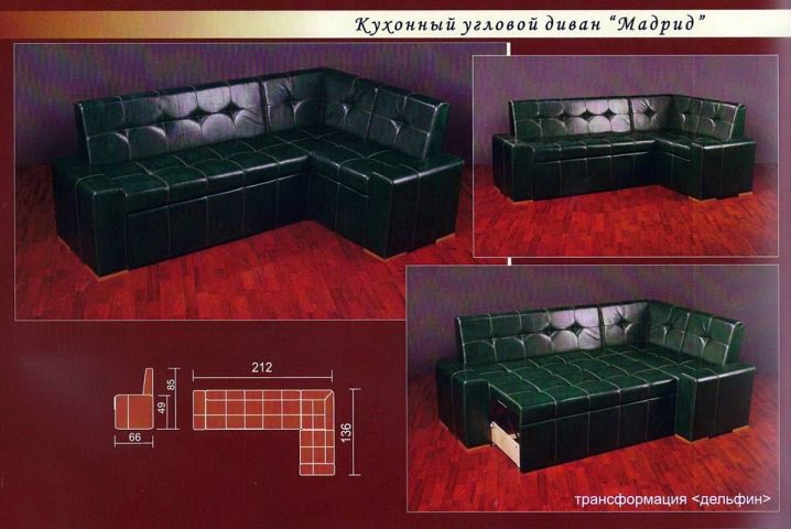 - "Madrid 2". The easiest representative of the corner category. Equipped with rear wall and only one side panel - armrest. The second sidewall is presented in the form of an average stiffness of the pillow, which is attached to the velcro to the sofa itself. The folding mechanism - "dolphin".