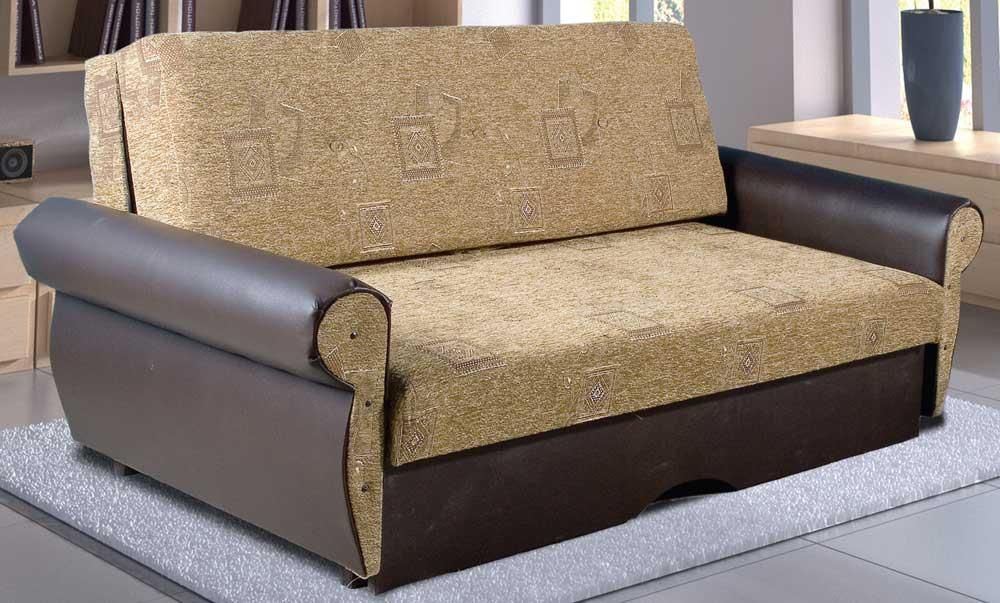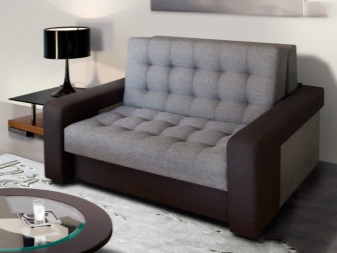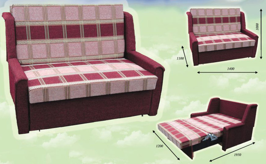 The sofa “Baby” is a compact small sofa that easily transforms into a rather spacious sleeping place. When assembled, such furniture most often has the following parameters: 135 * 100 * 100 cm. When unfolded, its dimensions can reach the size of standard beds: 120 * 200 cm, which allows even the tallest people in a small country house or a one-room apartment to get comfortable overnight .