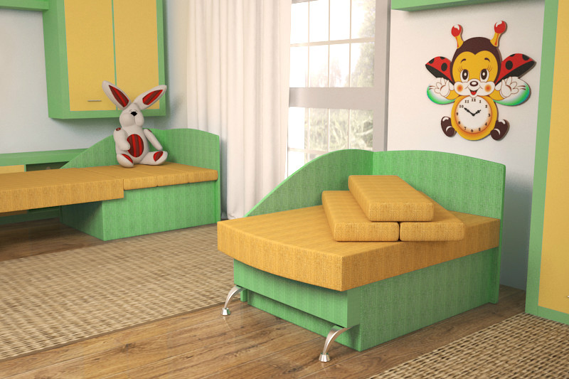 - Very often parents buy sofas "Baby" in the nursery, in which the sofa will serve as a full bed for the child. In this case, it is necessary to pay special attention to the strength of the structure,the ease of its transformation and the hardness of the sleeping surface, which will be responsible for the correct formation of the children's spine.