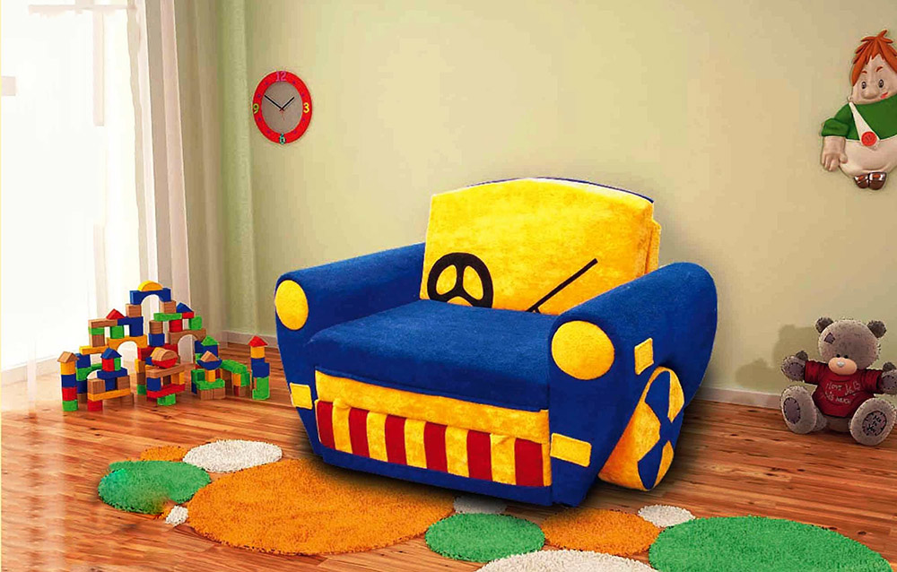 - Sofa, having a design and color scheme, oriented under the floor and the interests of the child can become an indispensable assistant in the daily ritual of putting a small family member to sleep.