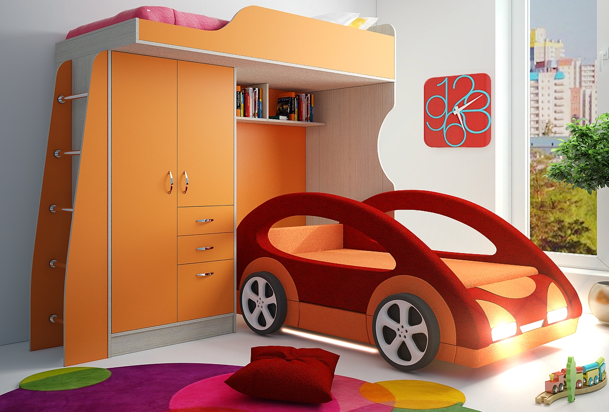 Children's sofa "Cosmic" is made in the form of a futuristic typewriter and is an ideal option for little car lovers.Decorative wheels will allow the child to feel like a hero-racer, and additional LED lights with a remote control will not only envelop the illusion of high-speed movement, but also fulfill the role of a night lamp. Soft high sides will not allow the child to fall down during sleep or hit their head., and a built-in drawer for clothes with a fairly simple and convenient opening mechanism will allow the child to be accustomed to self-cleaning a place to sleep.