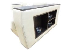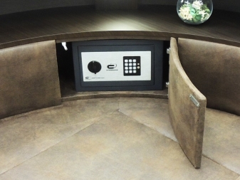 In the armrest can be embedded bar, shelves, drawers, pull-out pad or table. It is possible to install a backlight, a charging system for a mobile phone, a music center, a device for cooling drinks and a safe.
