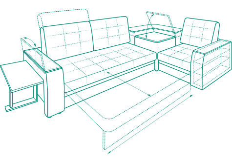 This feature easily turns an ordinary sofa into a convenient place to watch your favorite movies. Four options for backrest tilt allow you to adjust the sofa according to your mood and preferences of your guests.