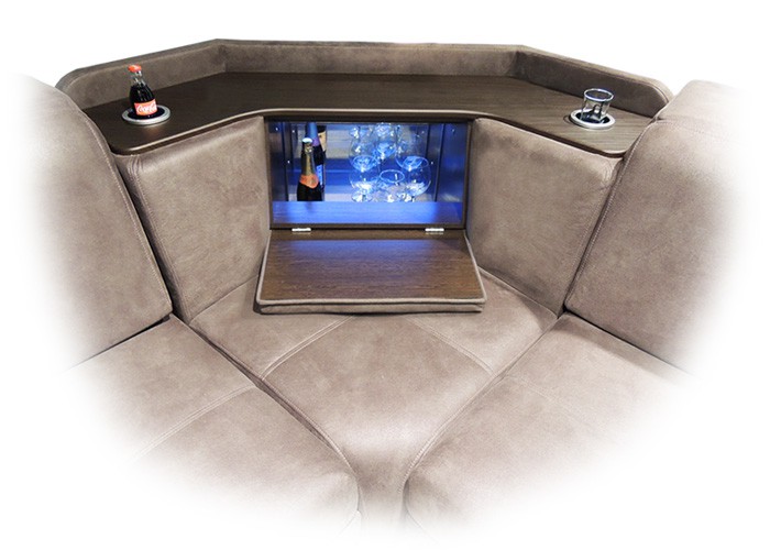 Cup holders with cooling function, built into the sofa, will ensure the safe preservation of the temperature of beverages. You can adjust the temperature yourself, as well as turn on the lights, giving the furniture a special chic.