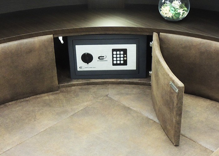 Built-in safe has a high degree of reliability and protection against hacking. A compartment opens with a specific code. Included is a key for emergency situations (for example, if you forget the code).