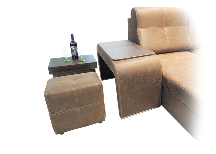 All the same options are available for this series of upholstered furniture as for IQ 121. You can order a universal table bar, which is placed both separately and between the sofa chairs. A special sleeping system per minute turns the sofa into a comfortable bed with an orthopedic mattress.