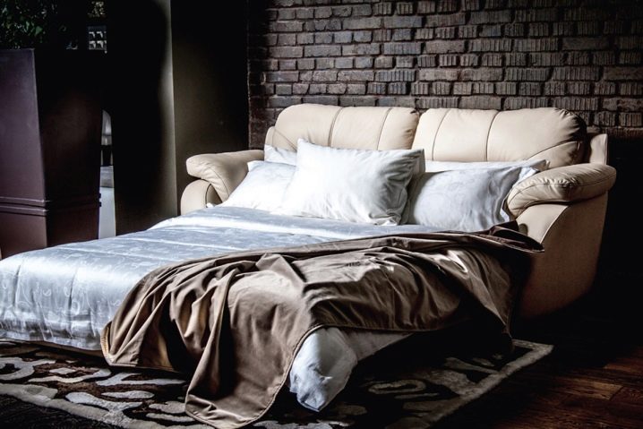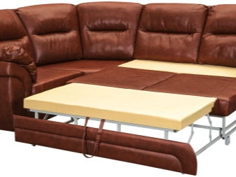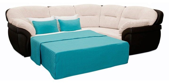 The furniture unfolds with the help of a lightweight withdrawable mechanism, which allows even a child to cope with it. This model has a metal frame, which when unfolded does not create drops, but makes an absolutely flat surface.Thanks to its durable frame, the furniture can withstand up to 140 kg. To bring such a sofa, as opposed to a corner, is not difficult, as well as assemble it. Included with this model are small size pillows.