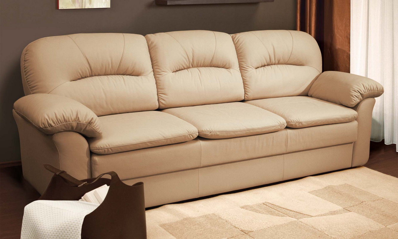 For a small room fit a straight compact sofa. Large furniture in such a room will look inappropriate. For a large living room fit solid and massive option.