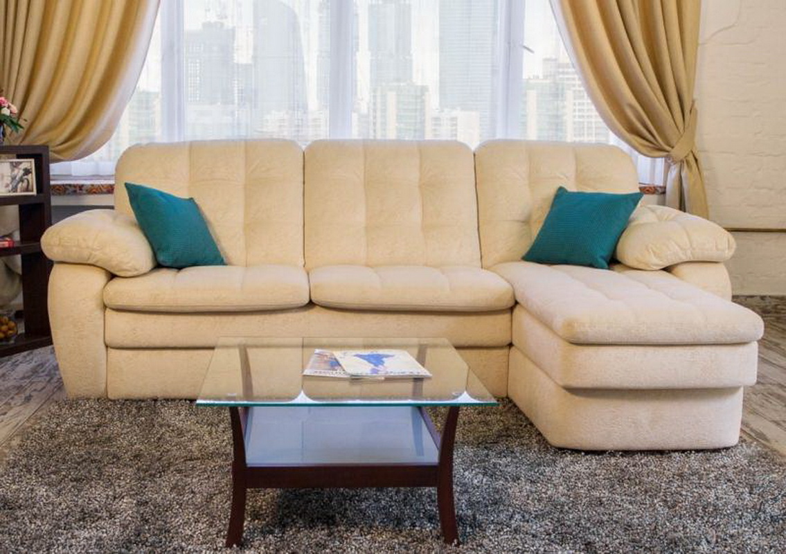 Corner sofas are very comfortable. They are comfortable to receive guests, the form of furniture has a relaxed pleasant communication. And if you put a table in front of the sofa, you can spend the evening with tea or a glass of wine. However, it is important to remember that the corner option will take up more space than the straight one. Think about where you put it, whether it will not impede the freedom of movement around the room.