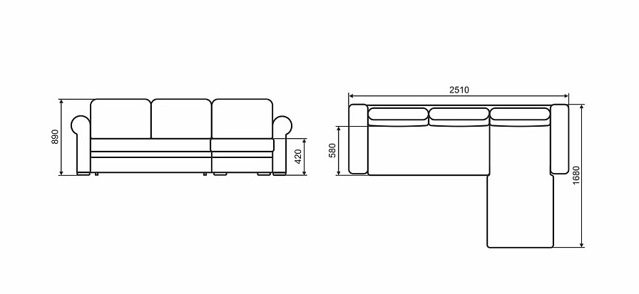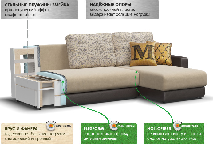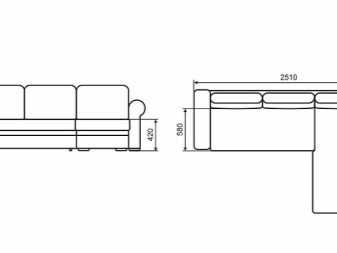 - the dimensions of the sofa when folded (straight - 240 cm by 110 cm, angular - 275 × 165 cm);
