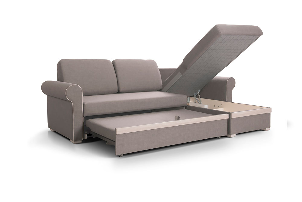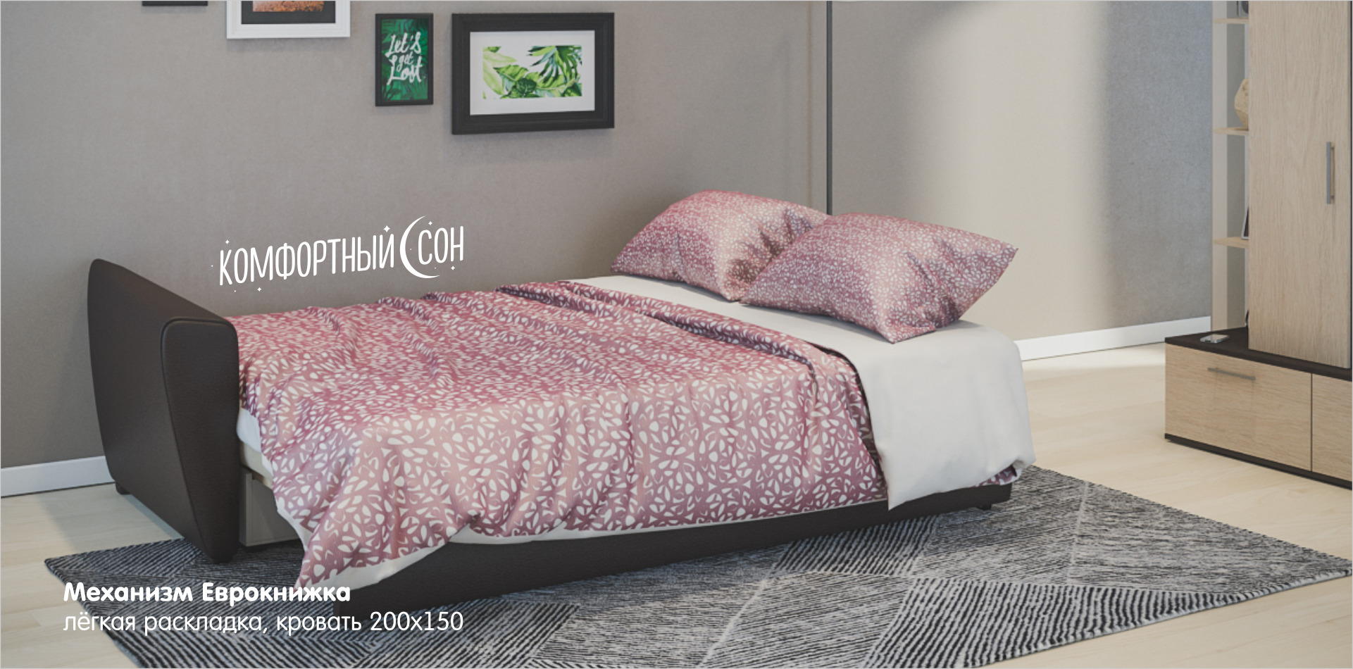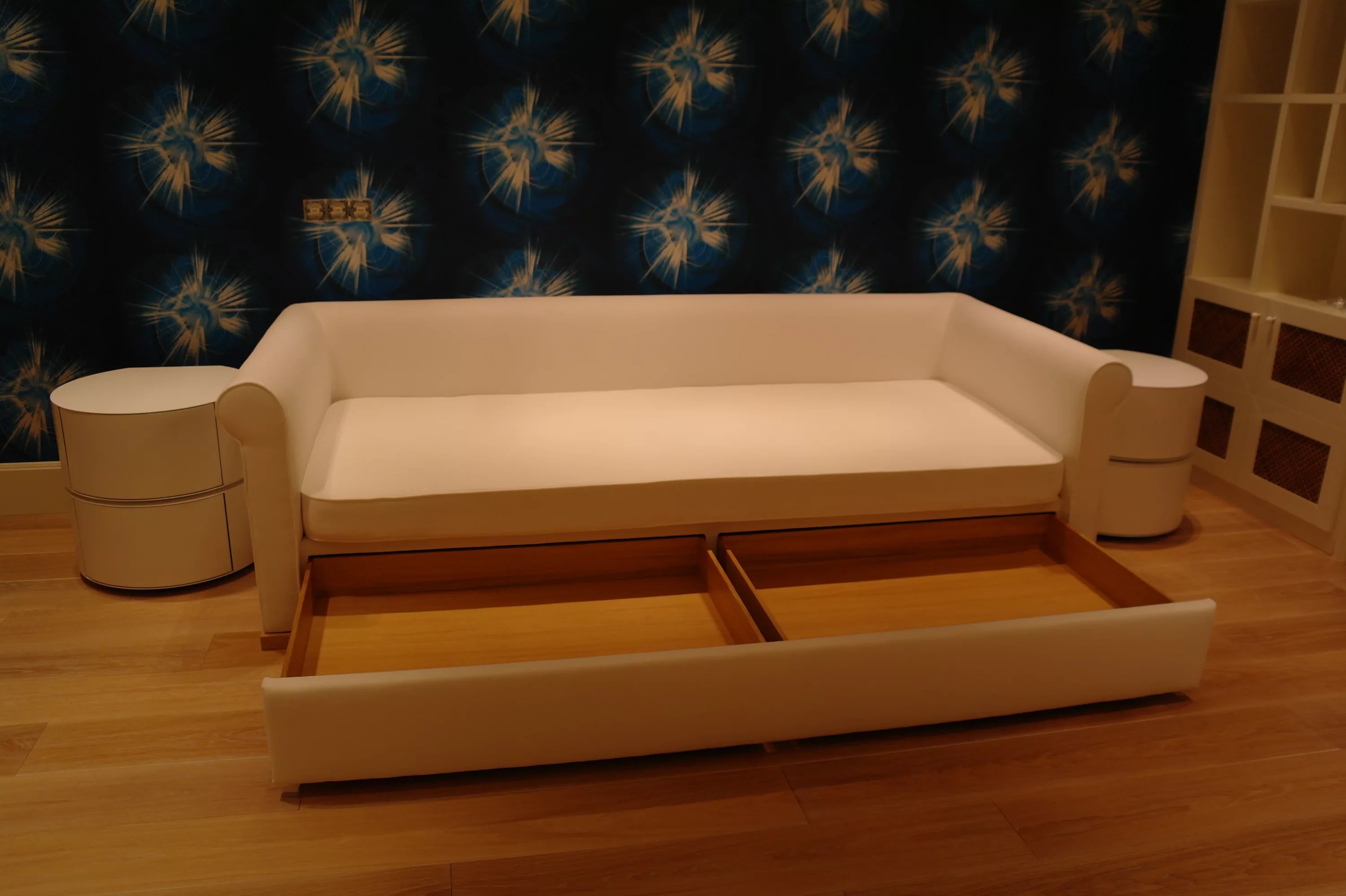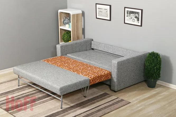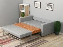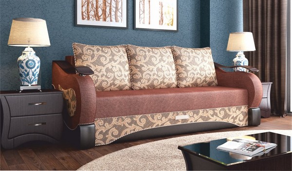 - Retractable. Probably the most popular form of sleeping couch - folding sofa bed. In Russia, such models became popular in the mid-90s because of their size and functionality. Nowadays, this view is often used as a guest option, as it does not take up much space, and at a certain time can serve as a comfortable sleeping place. The pull-out sofa bed is different in that the backrest remains vertical, while the sleeping surface hides under the base of the sofa, from where it is pulled out at the right time. The average price for pull-out sofa beds in the “Much Furniture” salon is 8 tons. P.