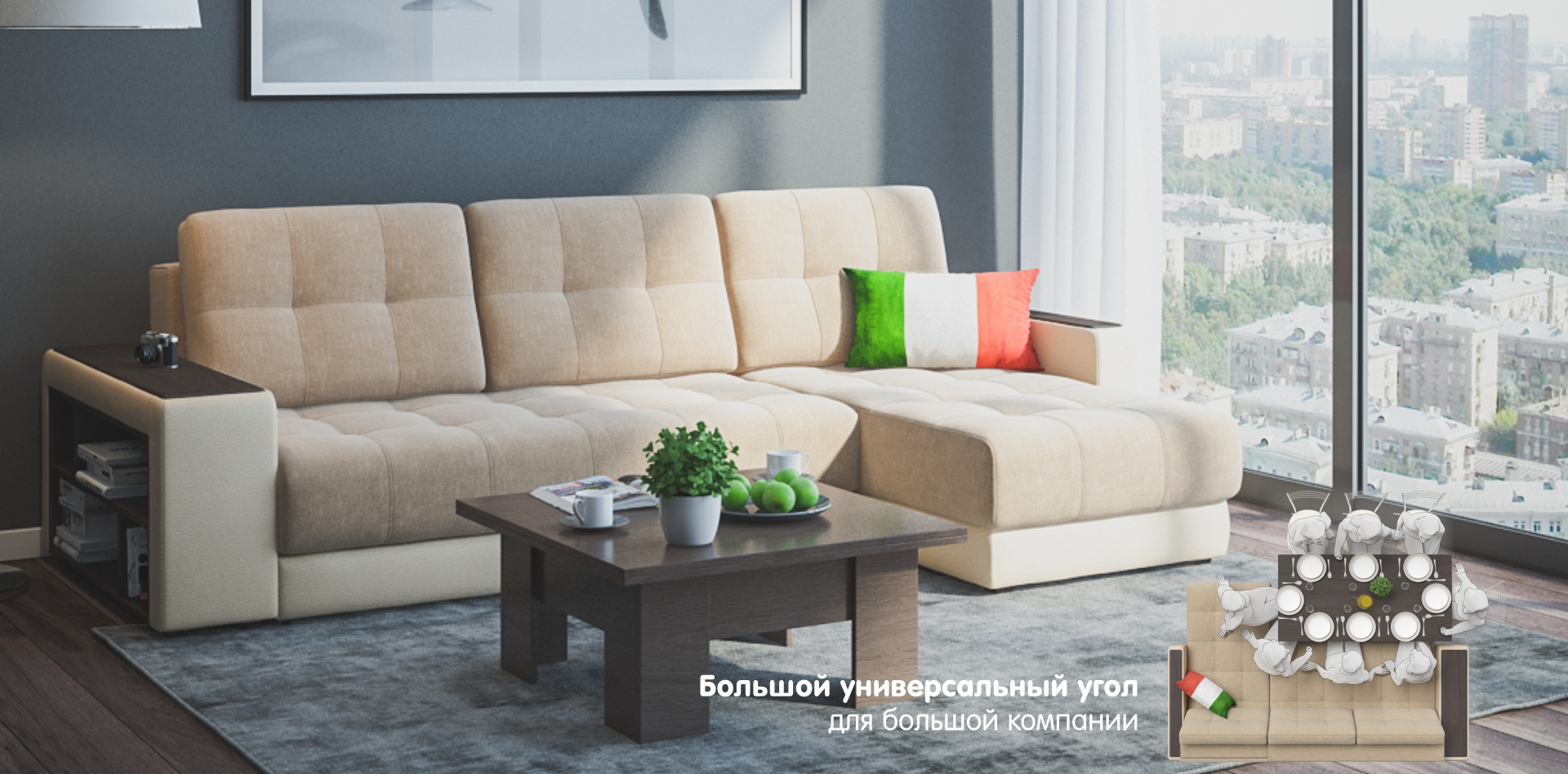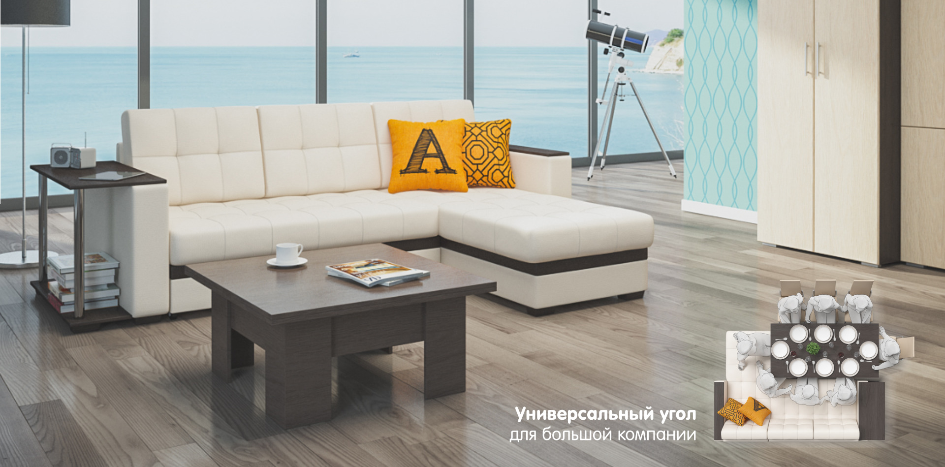 - Corner. This form is usually used when designing a kitchen or dining room, but they are also often placed in guest rooms. The average price for corner sofas in the “Lots of Furniture” salon is 15 tons.